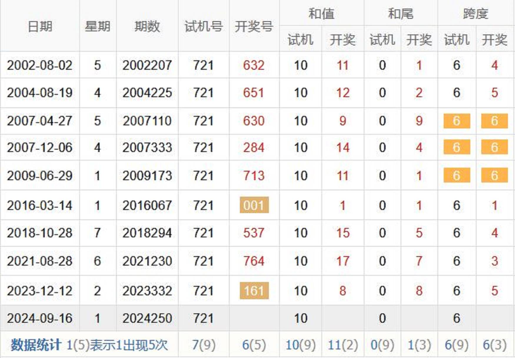 期数 | 试机号 | 关注码 | 金码 | 对应码 | 开奖号 | 出号 |