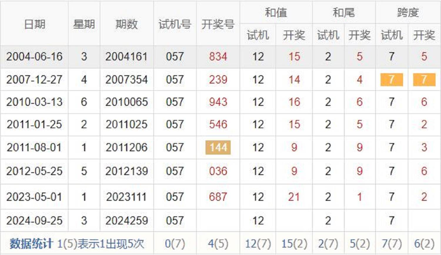 2012259期 试机号 420 开奖号 340 和 7