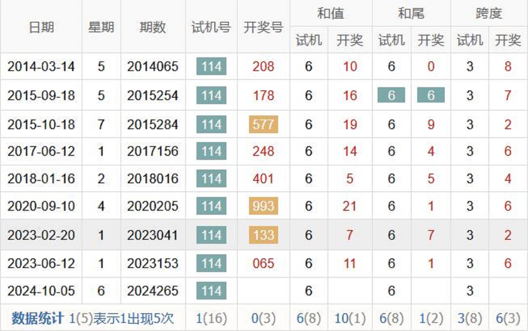 历史出现情况统计