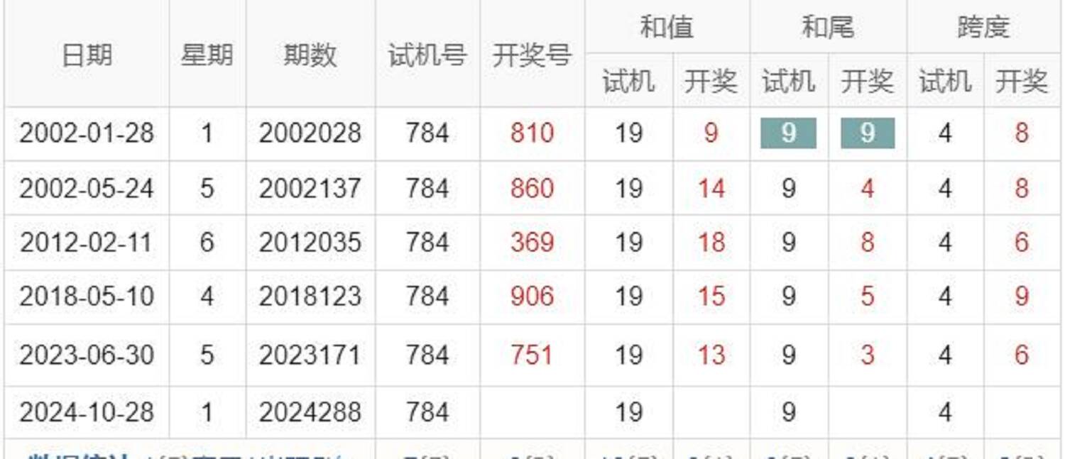 期数 | 试机号 | 关注码 | 金码 | 对应码 | 开奖号 | 出号 |