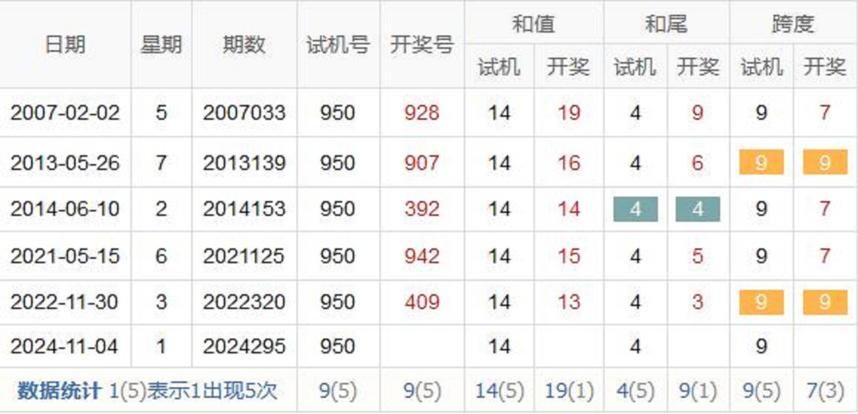 历史出现情况统计