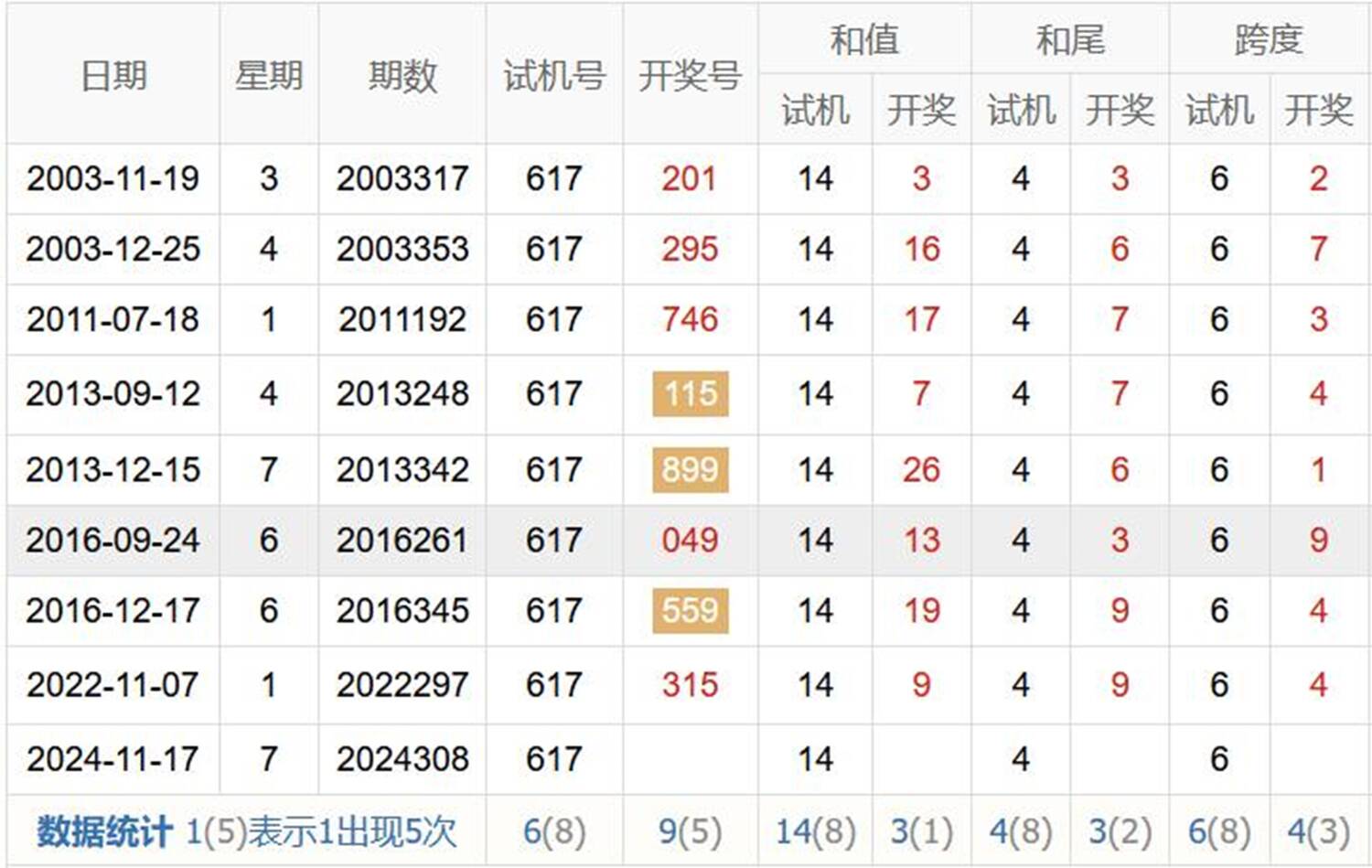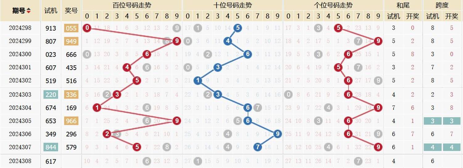 期数 | 试机号 | 关注码 | 金码 | 对应码 | 开奖号 | 出号 |