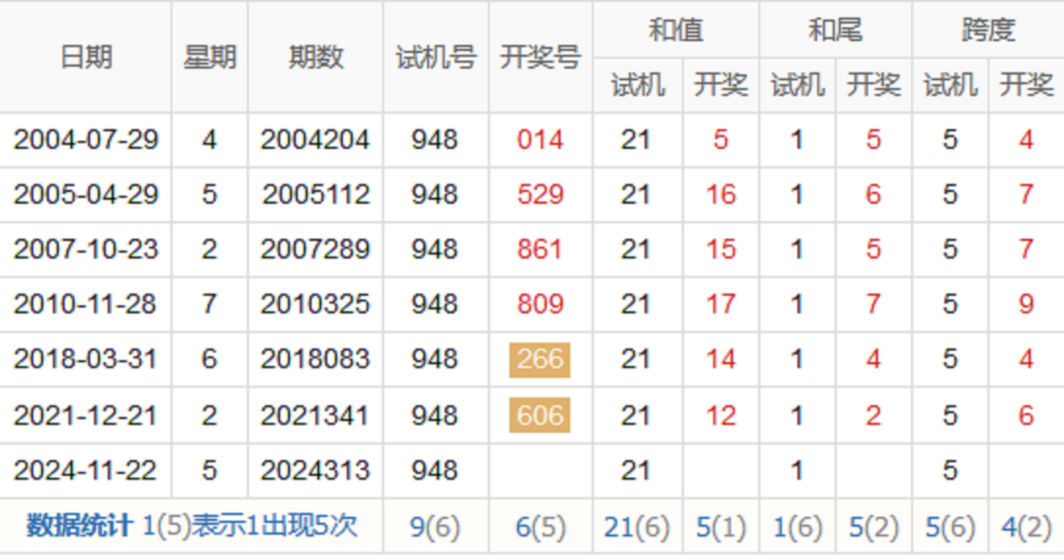期数 | 试机号 | 关注码 | 金码 | 对应码 | 开奖号 | 出号 |