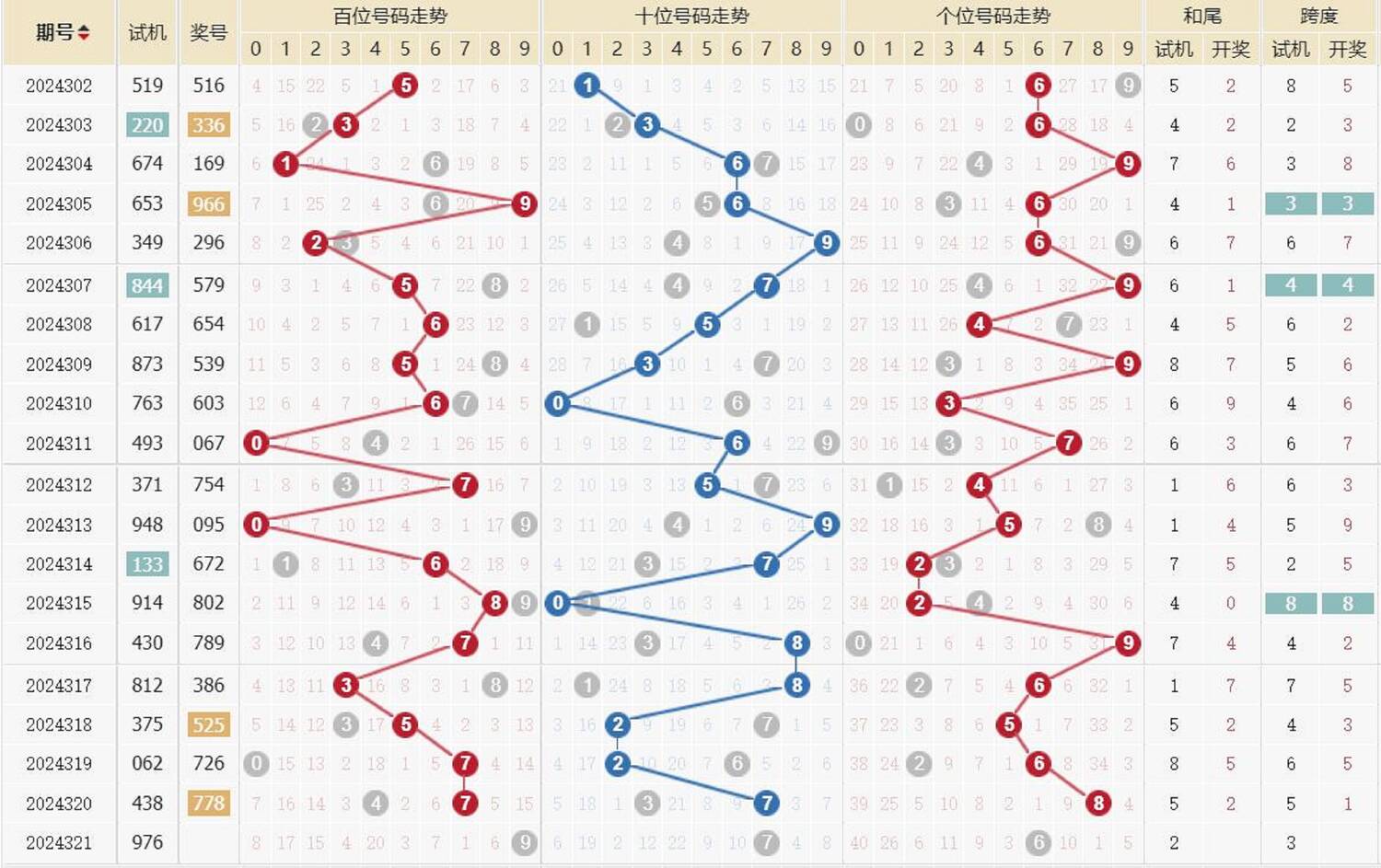 期数 | 试机号 | 关注码 | 金码 | 对应码 | 开奖号 | 出号 |