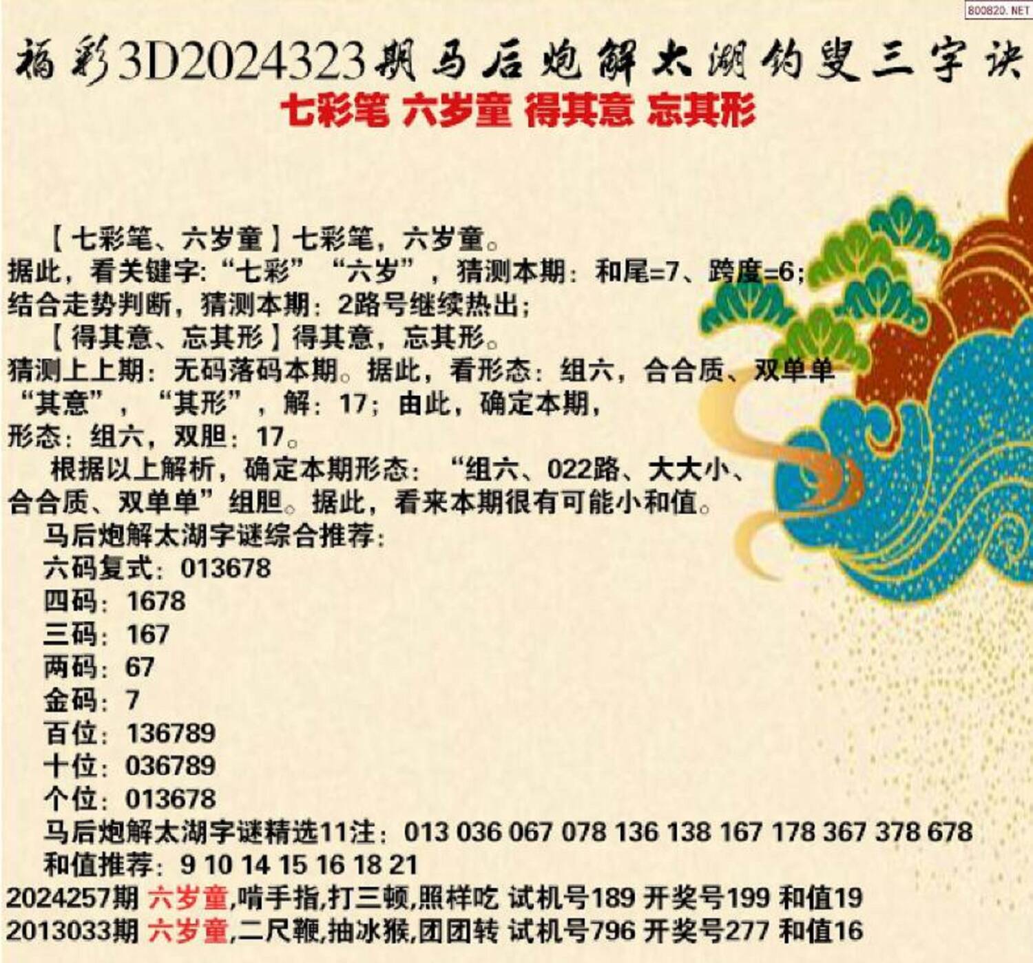 2356789,今天黑哥推荐七码