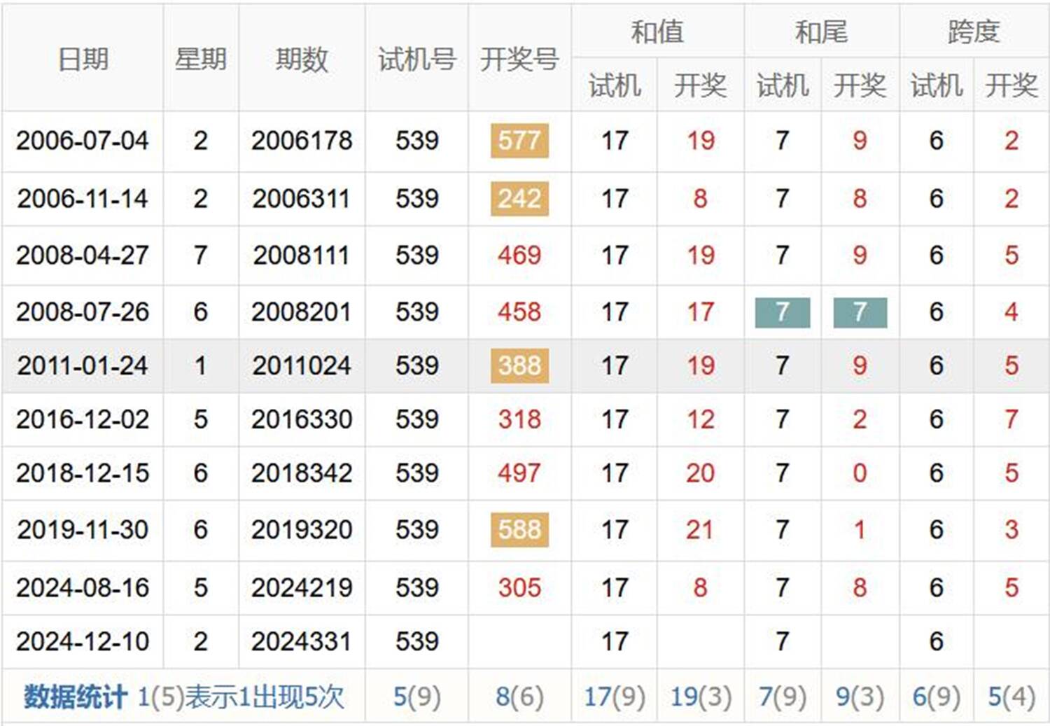 历史出现情况统计