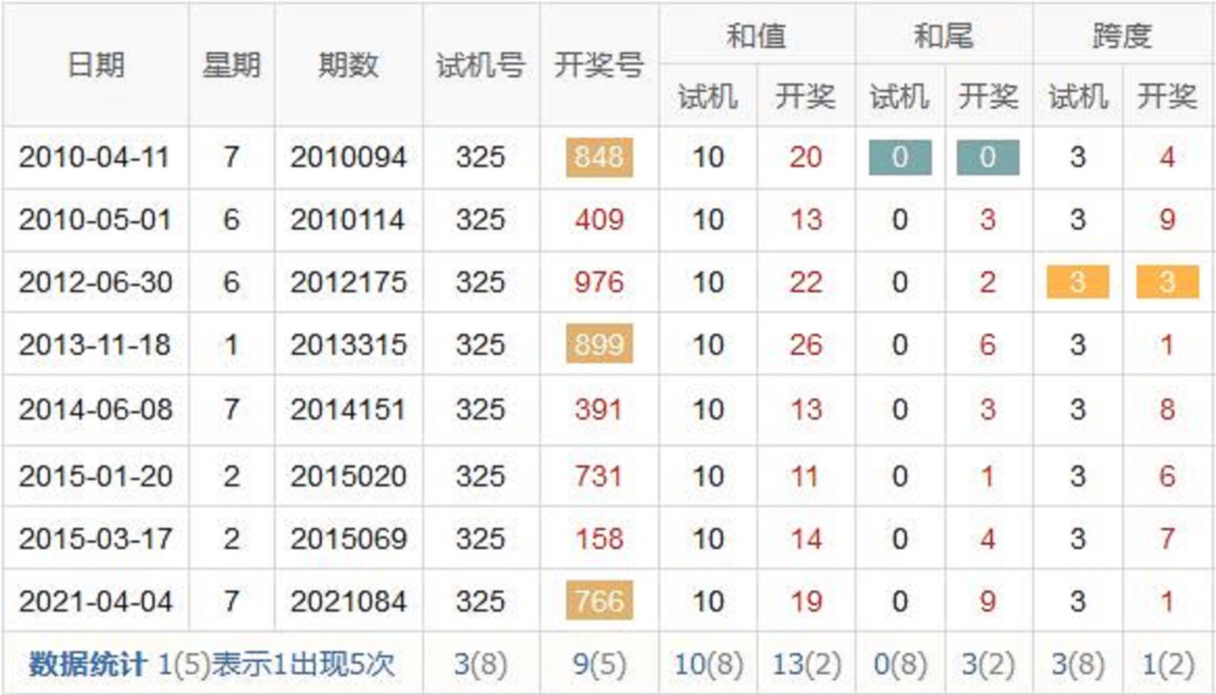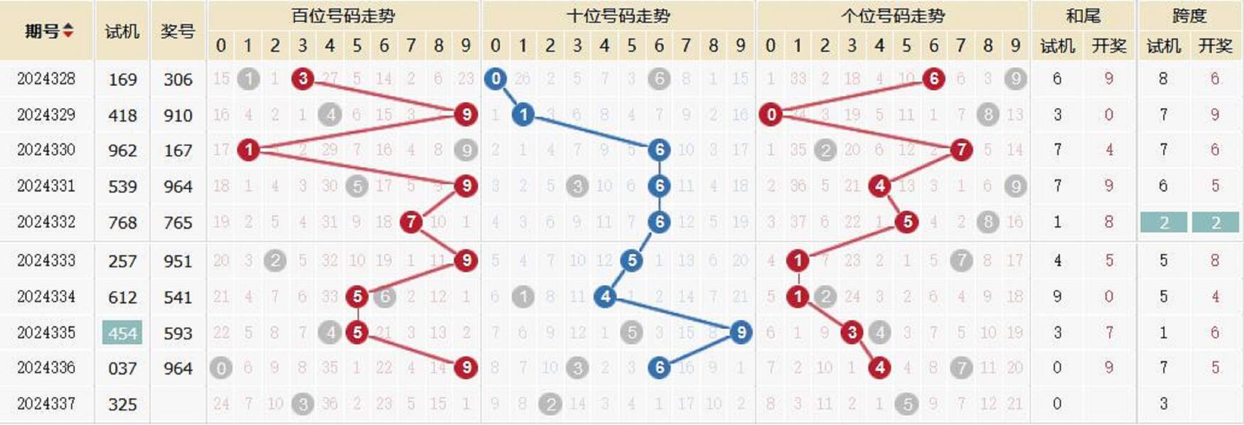 期数 | 试机号 | 关注码 | 金码 | 对应码 | 开奖号 | 出号 |