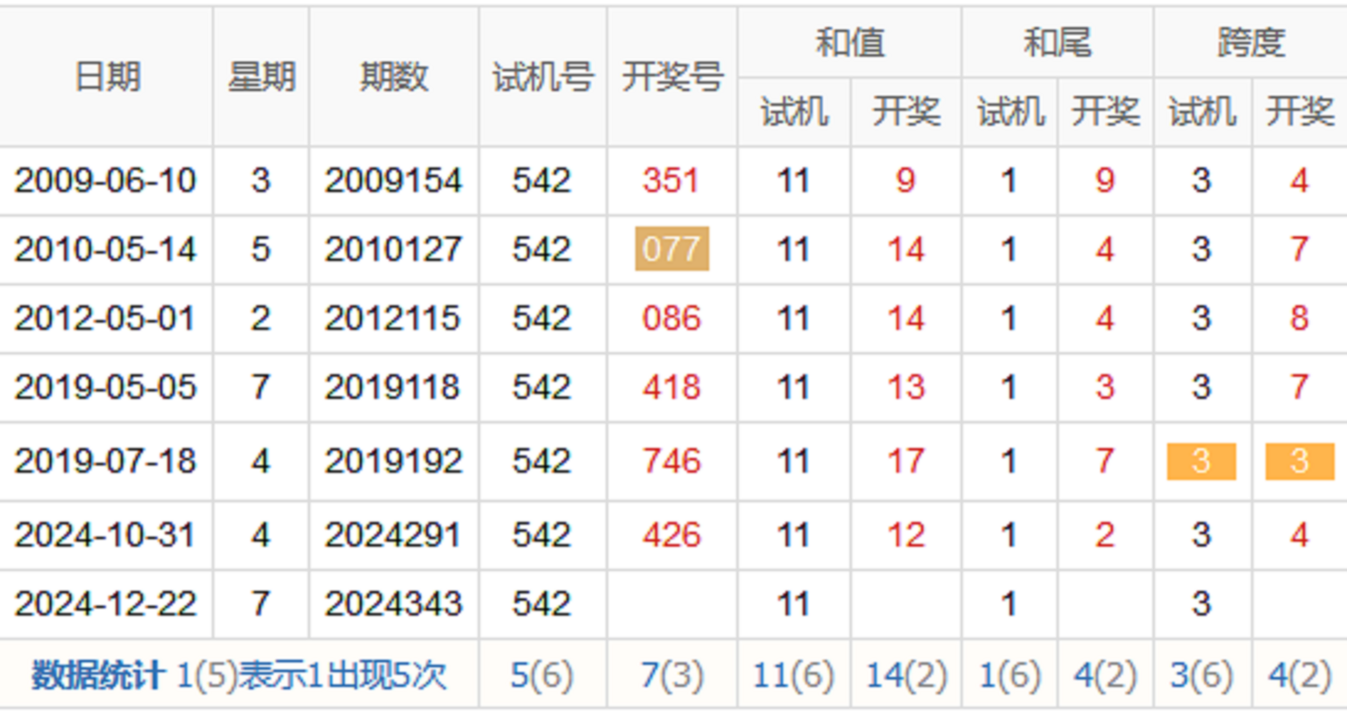 历史出现情况统计