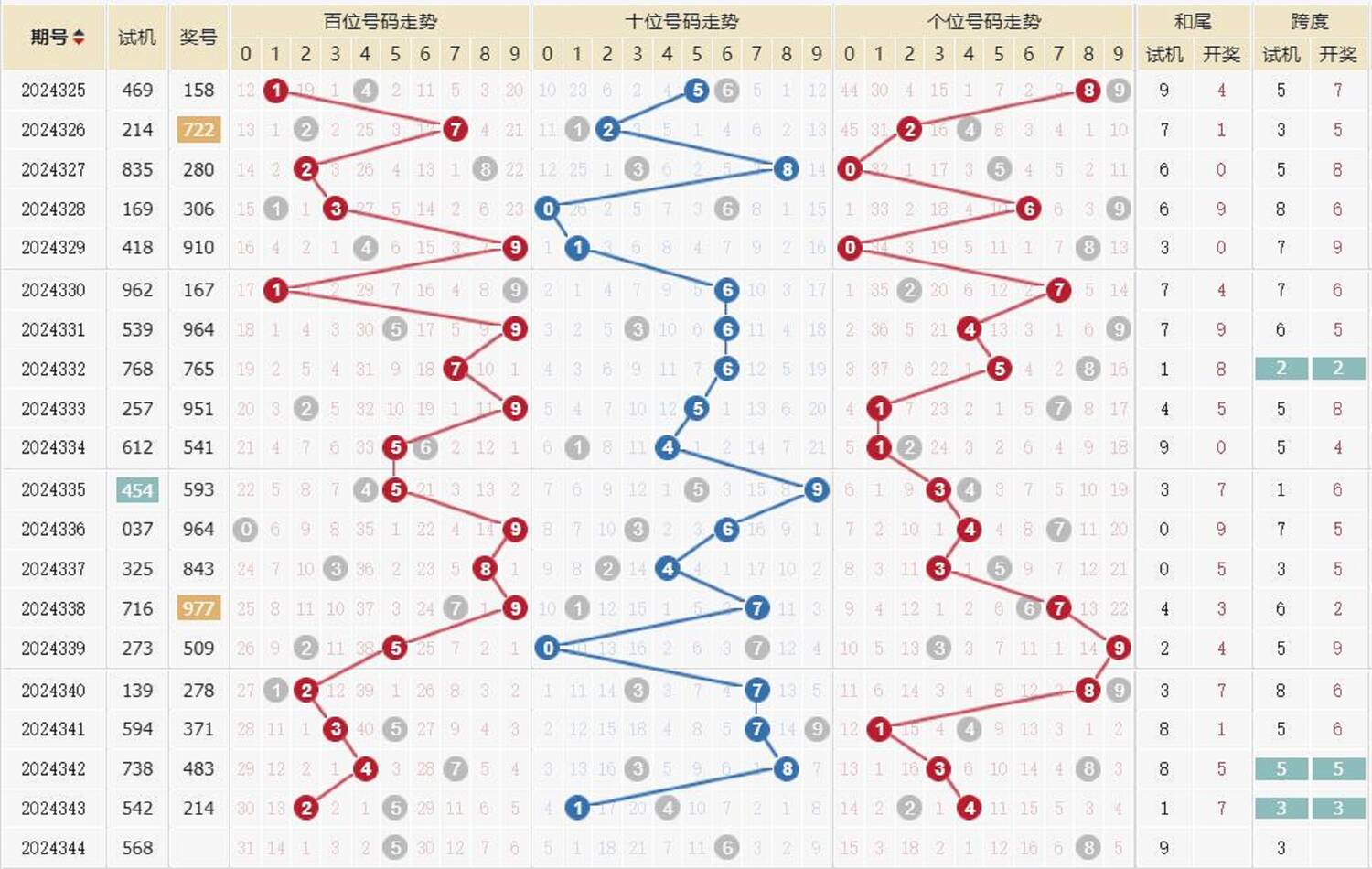 期数 | 试机号 | 关注码 | 金码 | 对应码 | 开奖号 | 出号 |