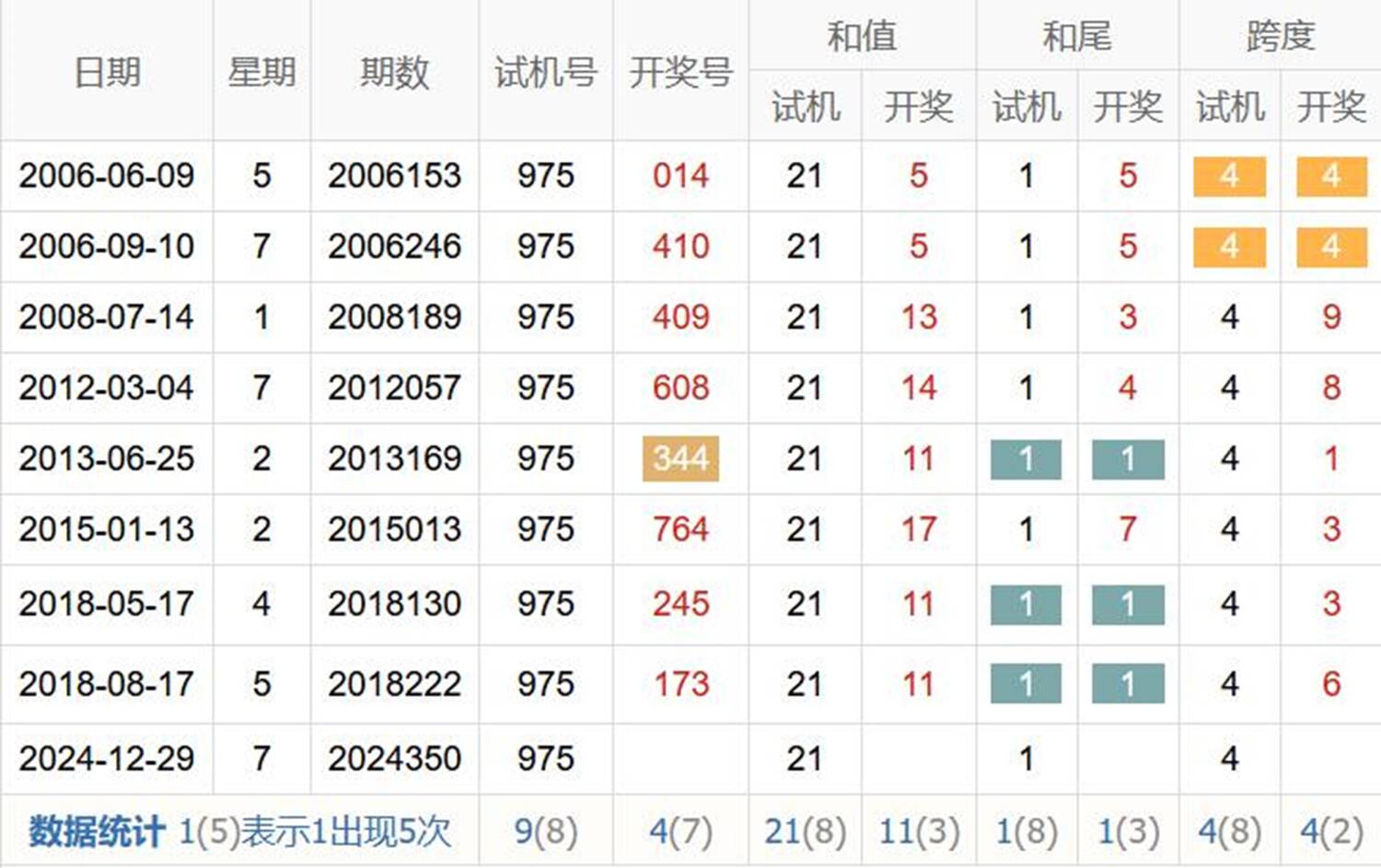 历史出现情况统计