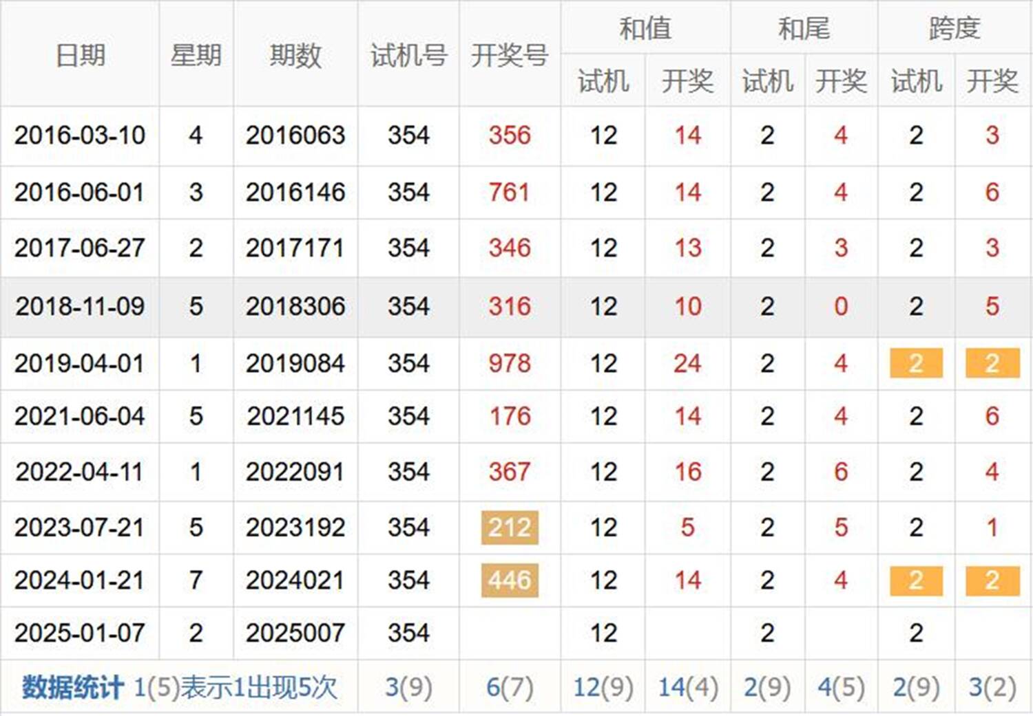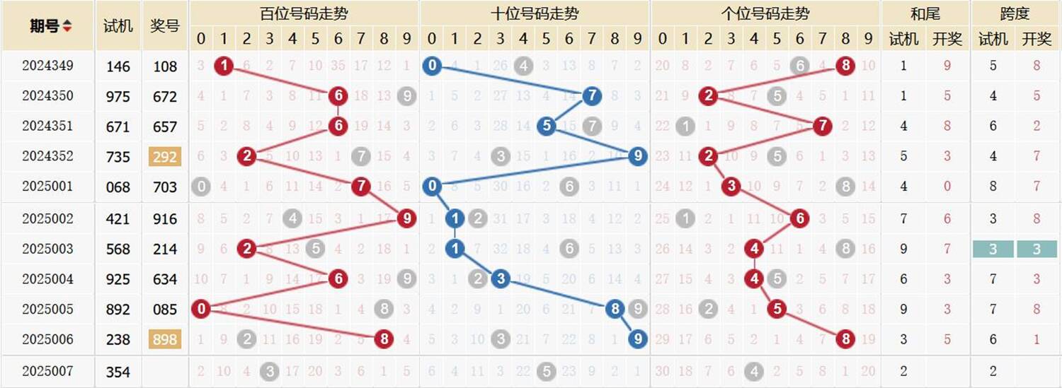 期数 | 试机号 | 关注码 | 金码 | 对应码 | 开奖号 | 出号 |