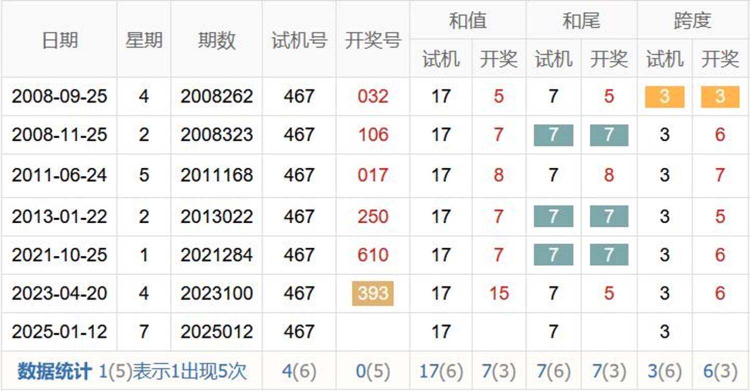 期数 | 试机号 | 关注码 | 金码 | 对应码 | 开奖号 | 出号 |
