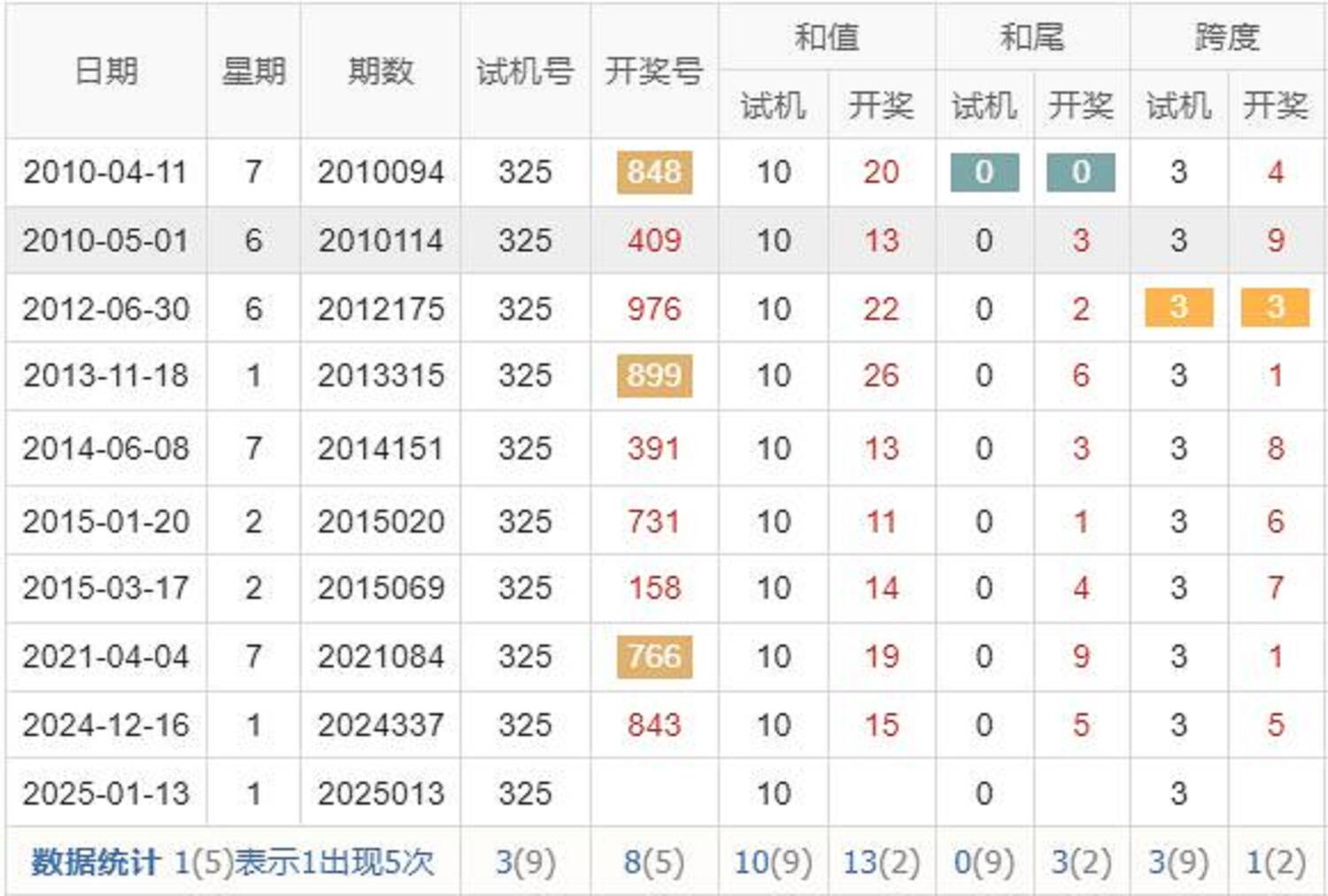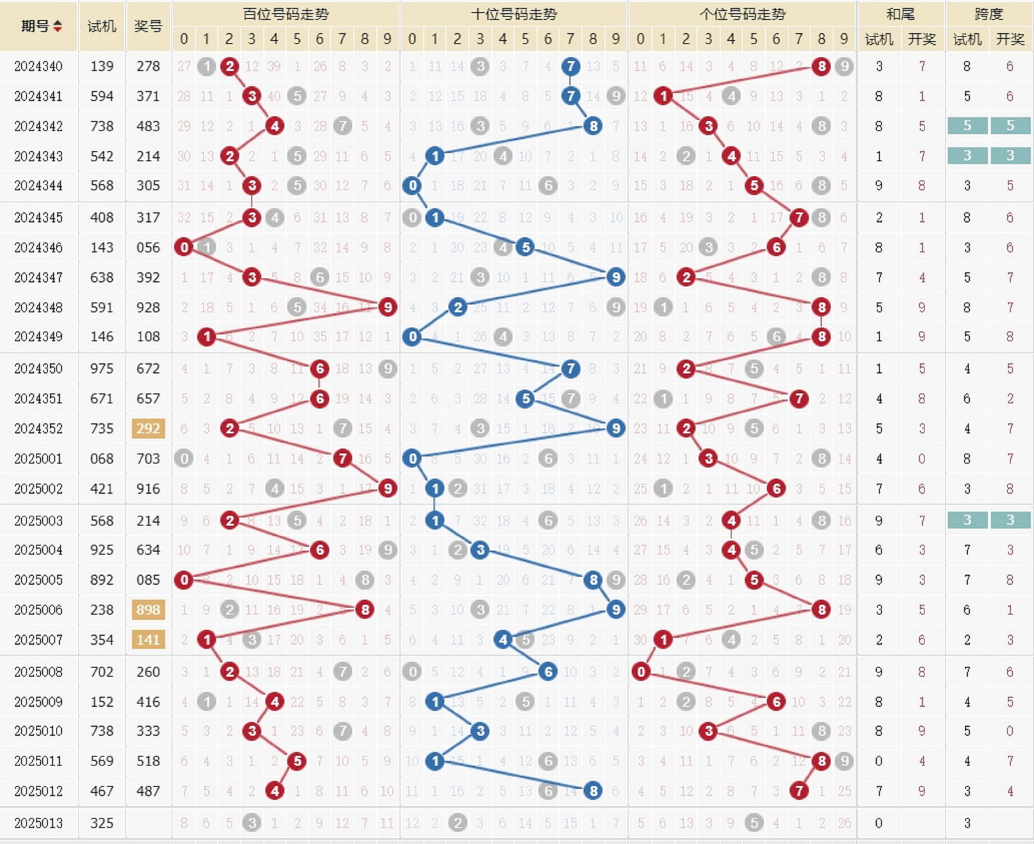 期数 | 试机号 | 关注码 | 金码 | 对应码 | 开奖号 | 出号 |