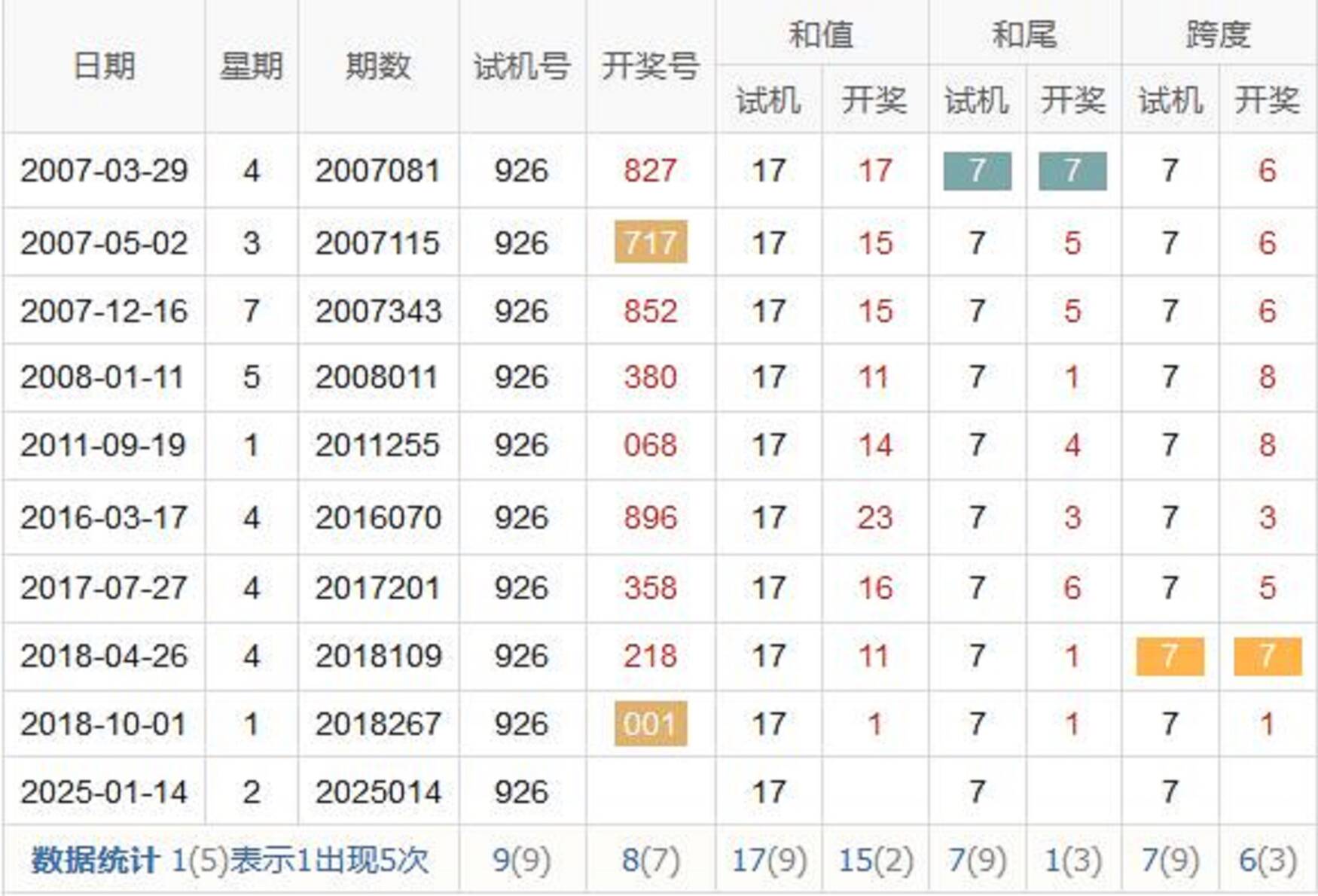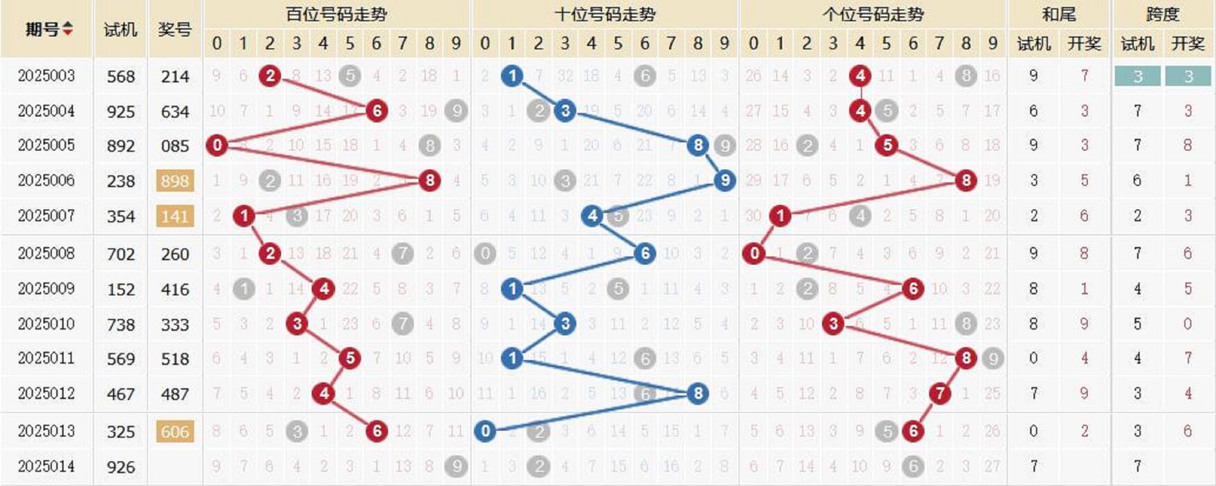 期数 | 试机号 | 关注码 | 金码 | 对应码 | 开奖号 | 出号 |
