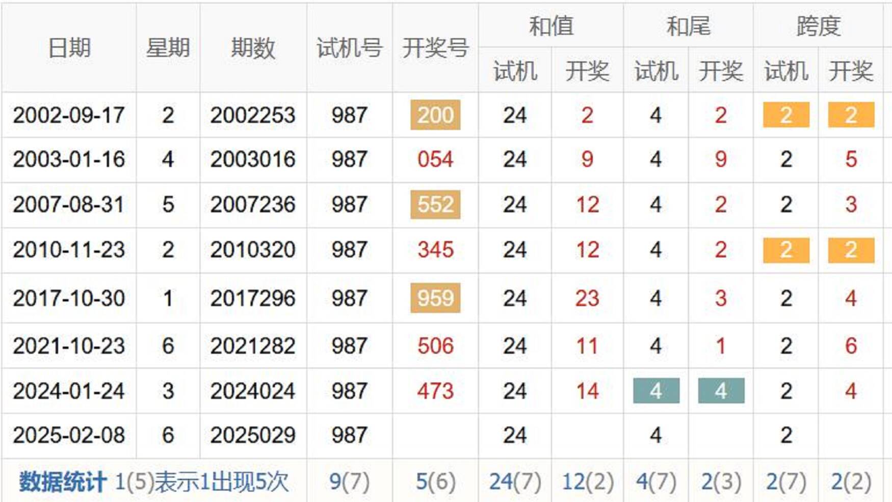试机号走势图