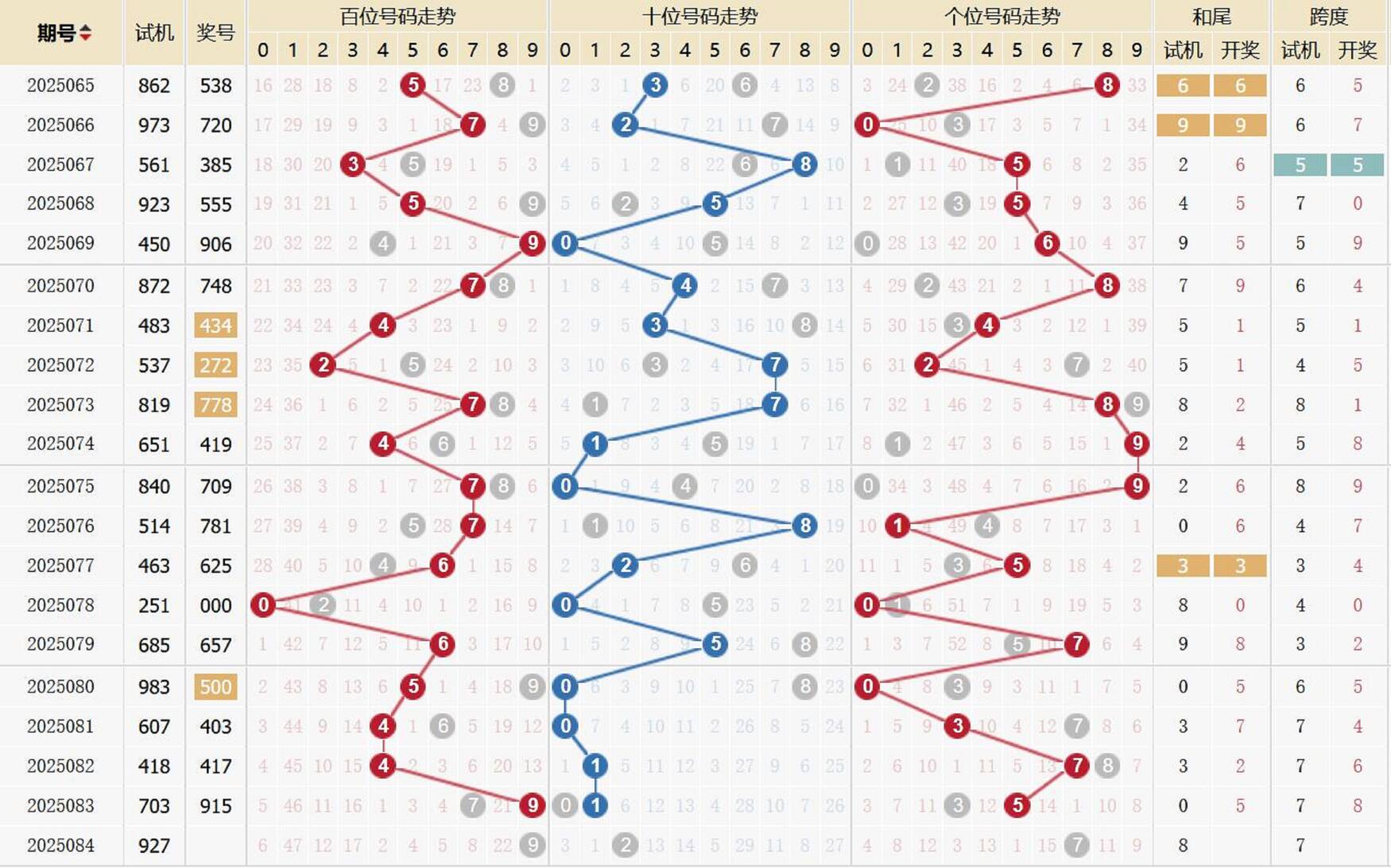 期数 | 试机号 | 关注码 | 金码 | 对应码 | 开奖号 | 出号 |