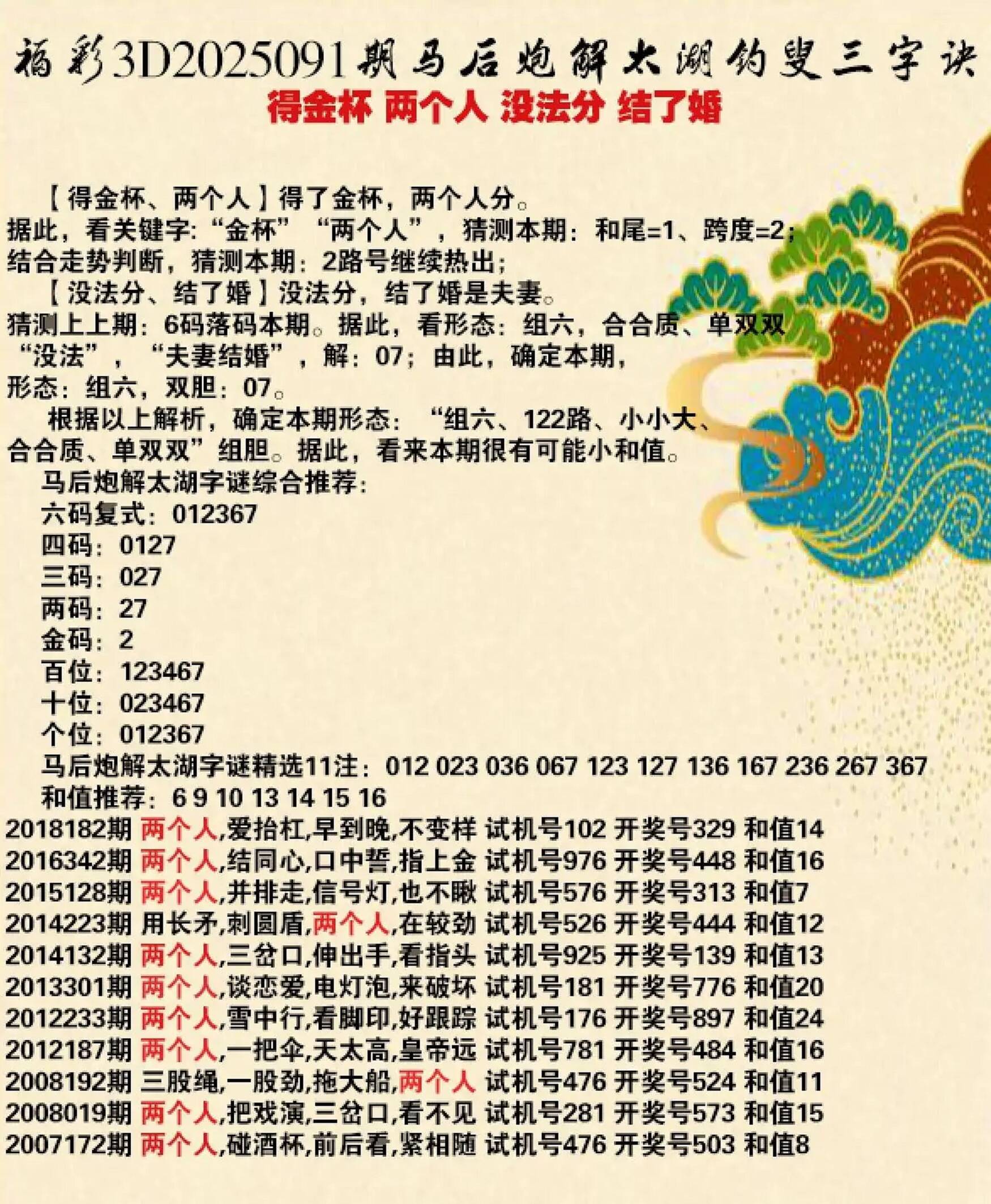 独胆1 双飞15 19