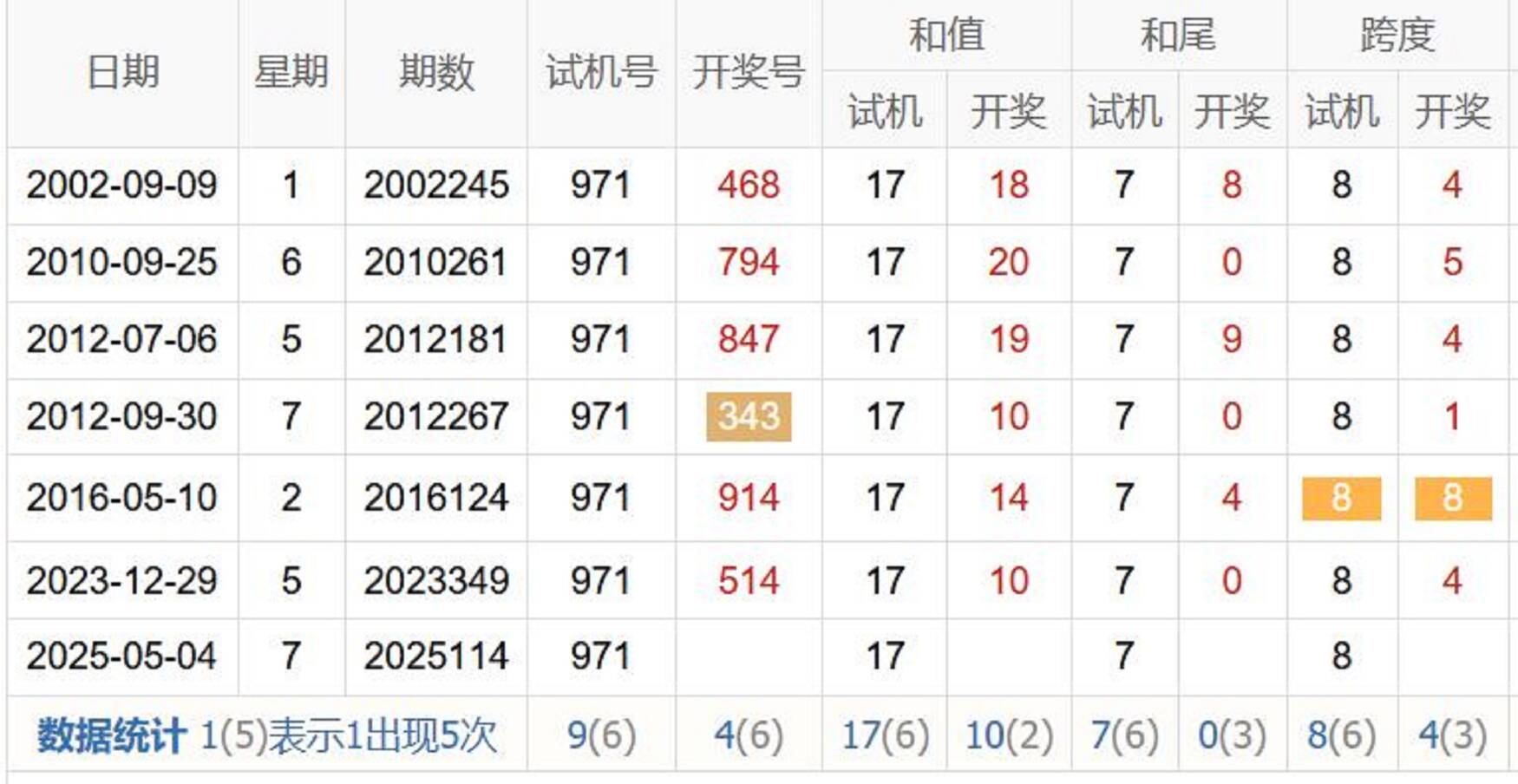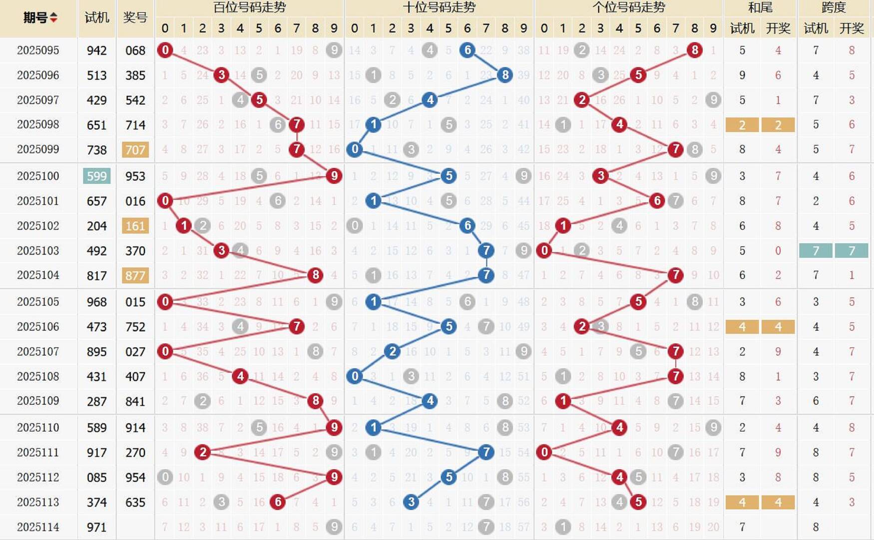 期数 | 试机号 | 关注码 | 金码 | 对应码 | 开奖号 | 出号 |