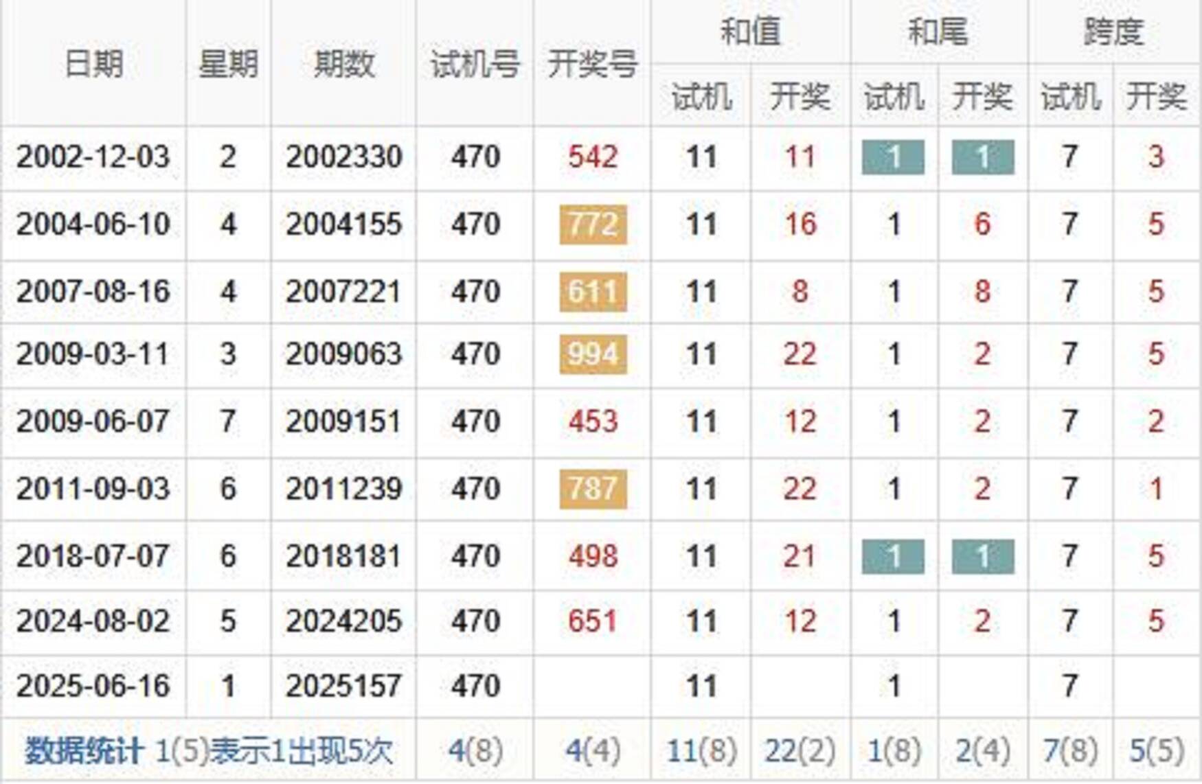金码历史统计