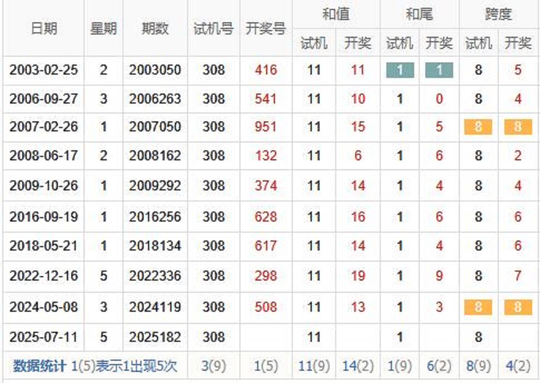 期数 | 试机号 | 关注码 | 金码 | 对应码 | 开奖号 | 出号 |
