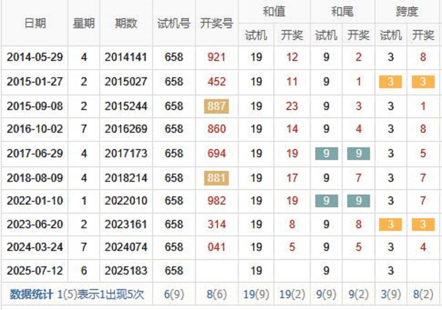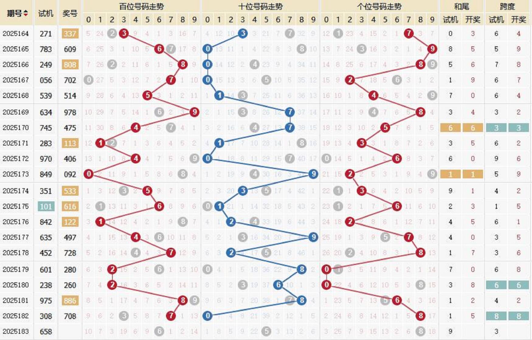 期数 | 试机号 | 关注码 | 金码 | 对应码 | 开奖号 | 出号 |