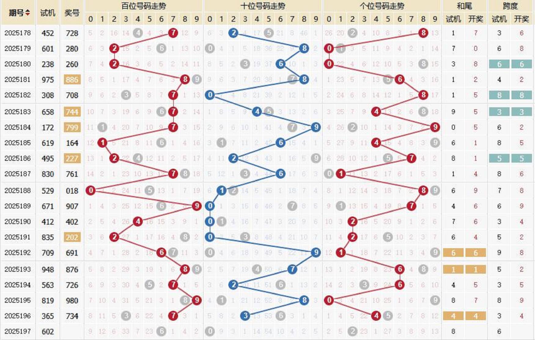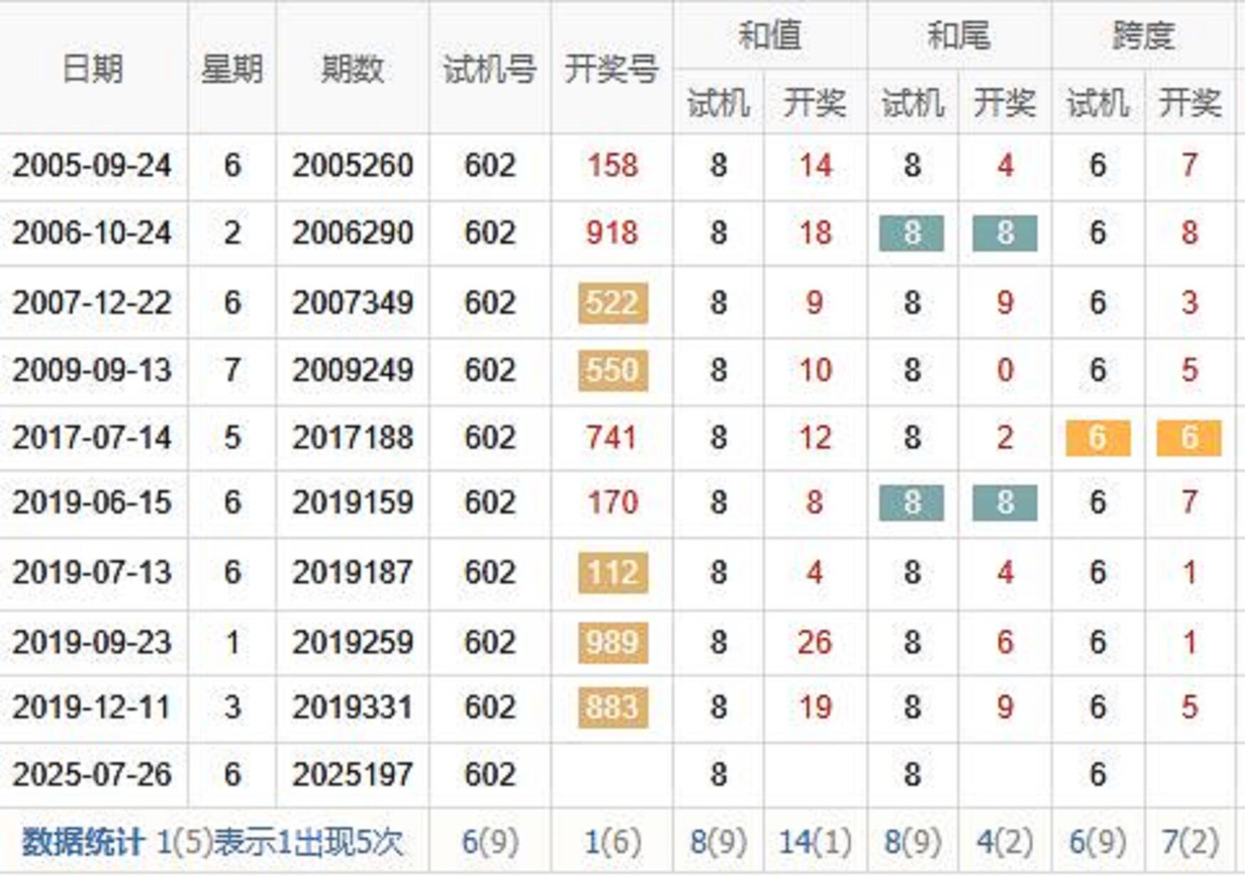期数 | 试机号 | 关注码 | 金码 | 对应码 | 开奖号 | 出号 |