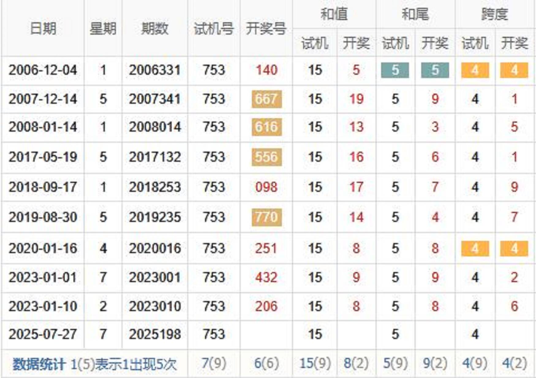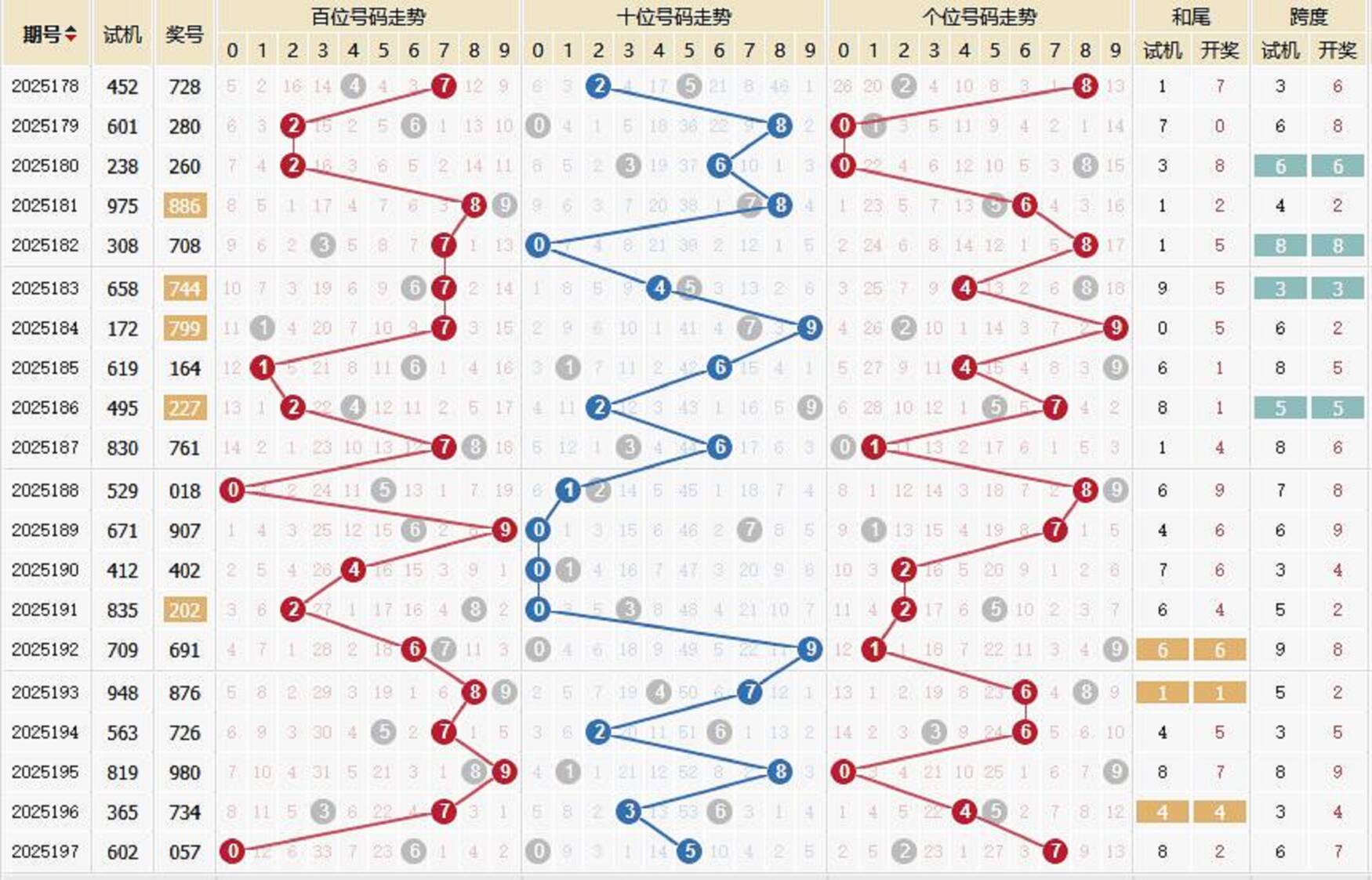 期数 | 试机号 | 关注码 | 金码 | 对应码 | 开奖号 | 出号 |