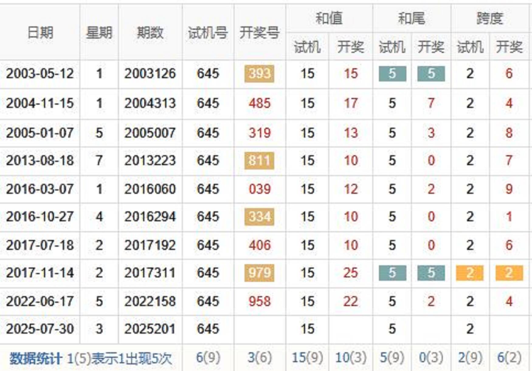 期数 | 试机号 | 关注码 | 金码 | 对应码 | 开奖号 | 出号 |