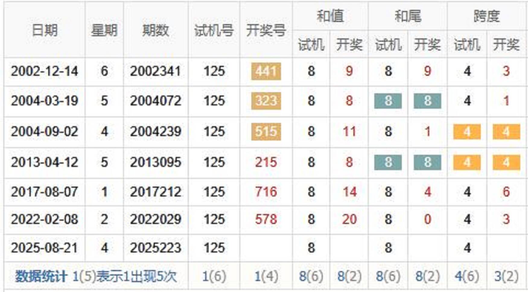 历史出现情况统计