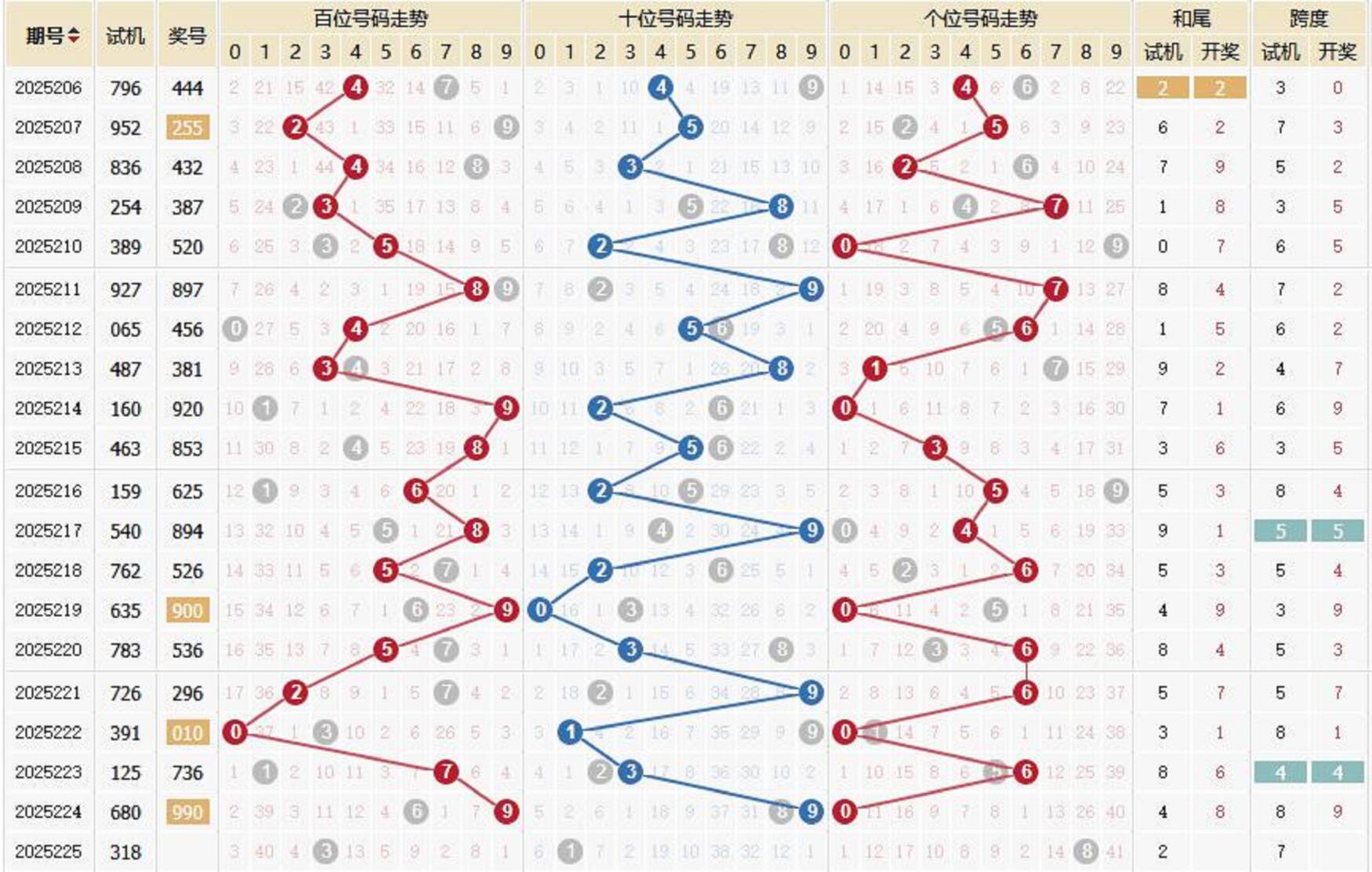期数 | 试机号 | 关注码 | 金码 | 对应码 | 开奖号 | 出号 |