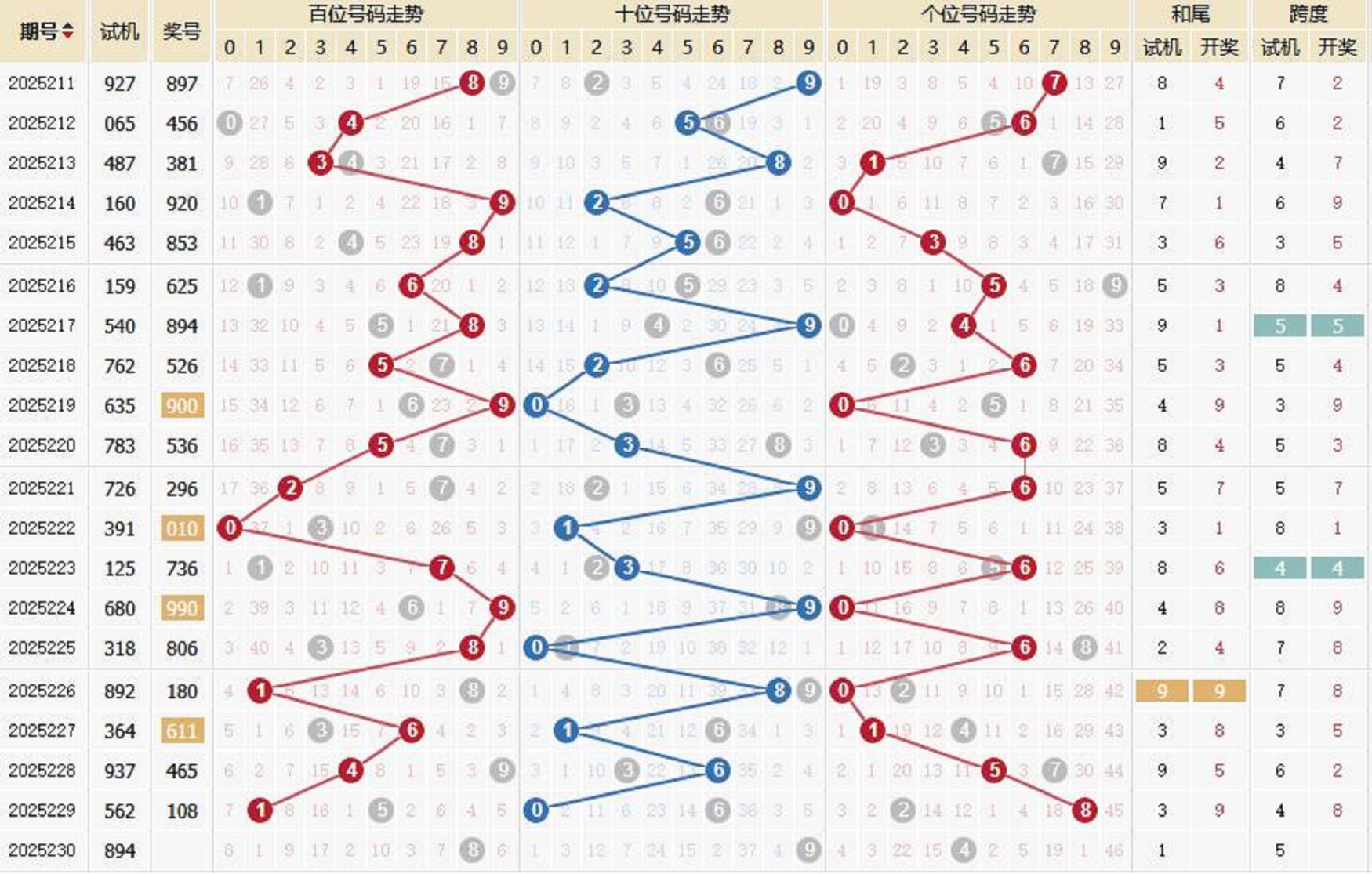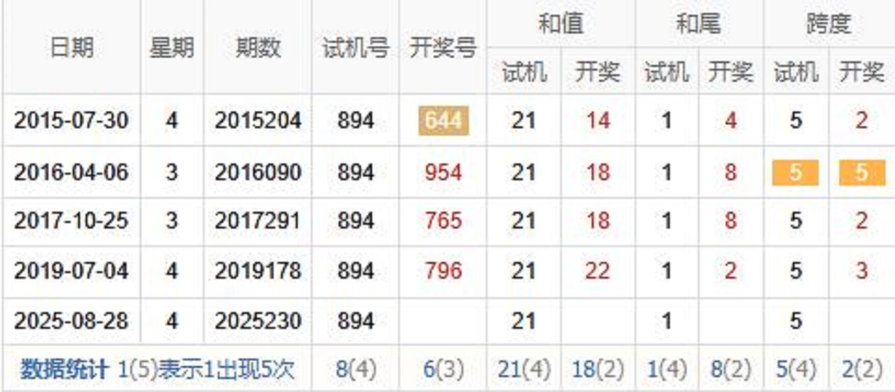 期数 | 试机号 | 关注码 | 金码 | 对应码 | 开奖号 | 出号 |