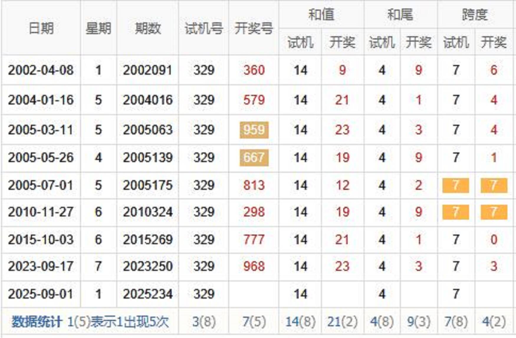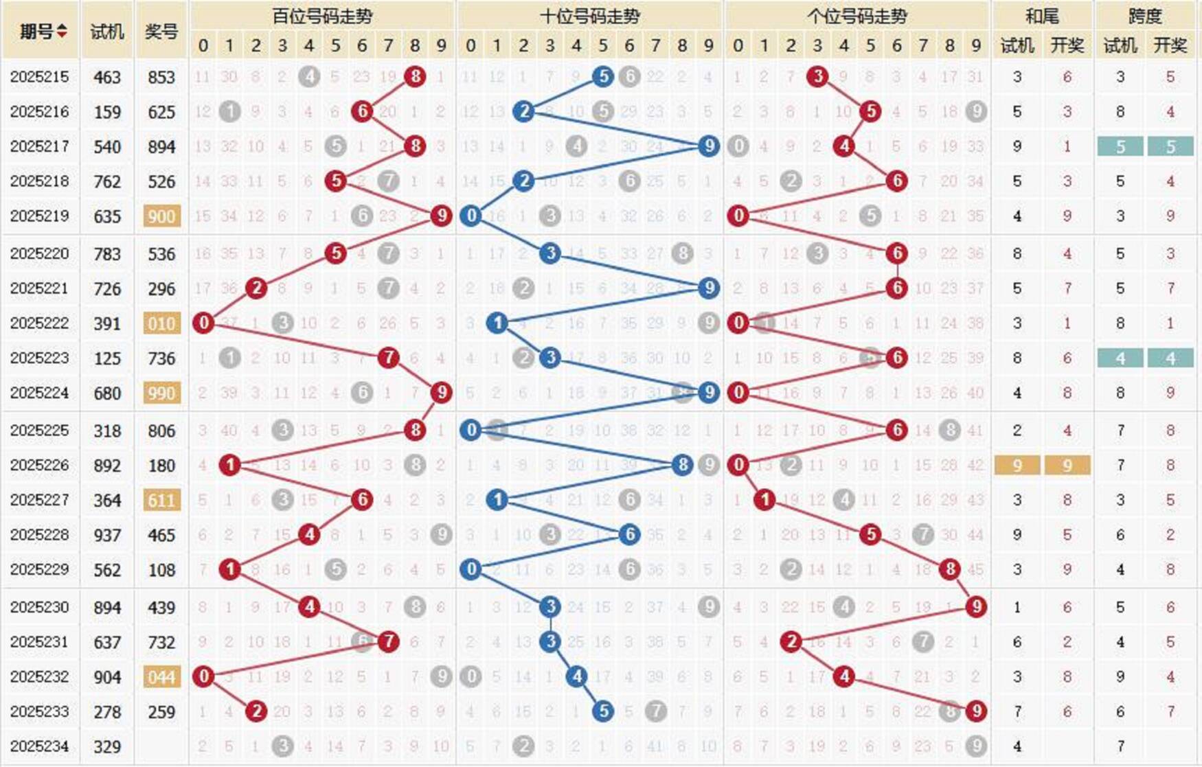 期数 | 试机号 | 关注码 | 金码 | 对应码 | 开奖号 | 出号 |