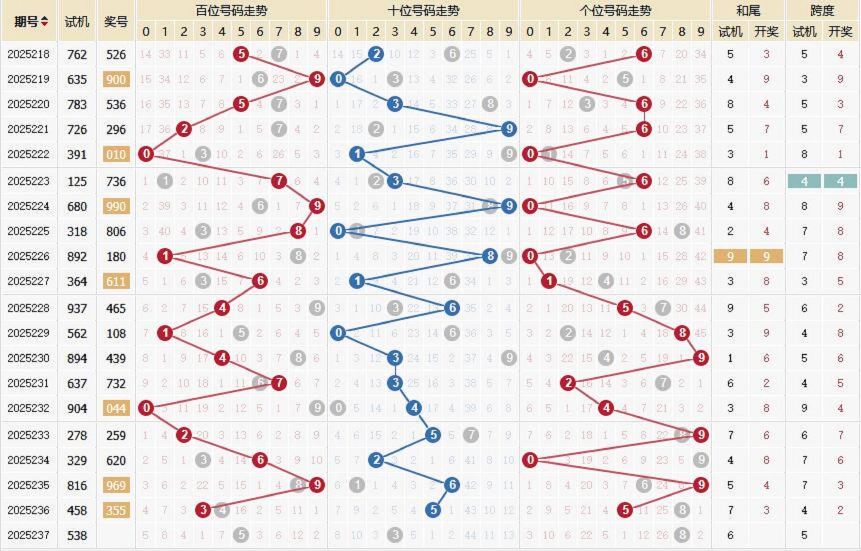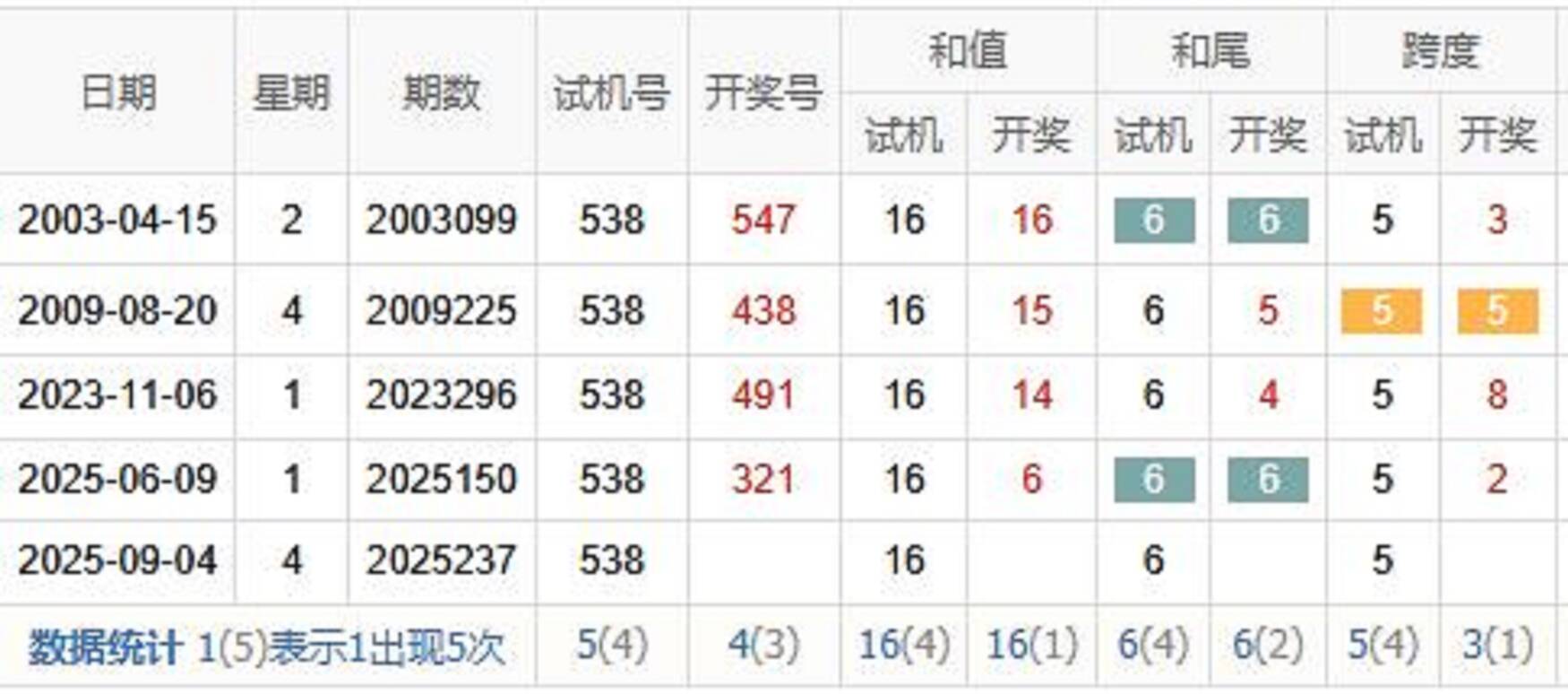 期数 | 试机号 | 关注码 | 金码 | 对应码 | 开奖号 | 出号 |
