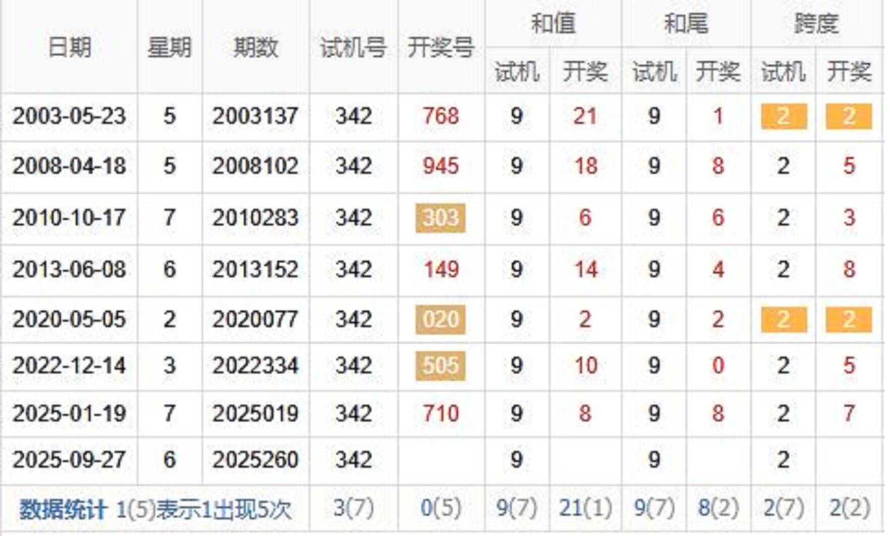 历史出现情况统计