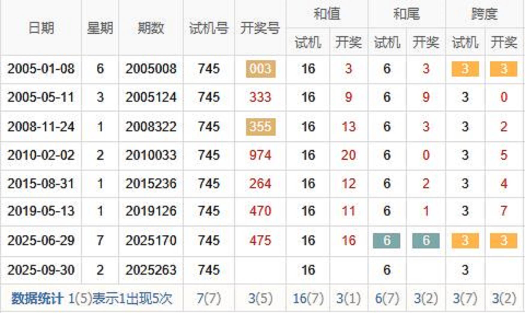 历史出现情况统计