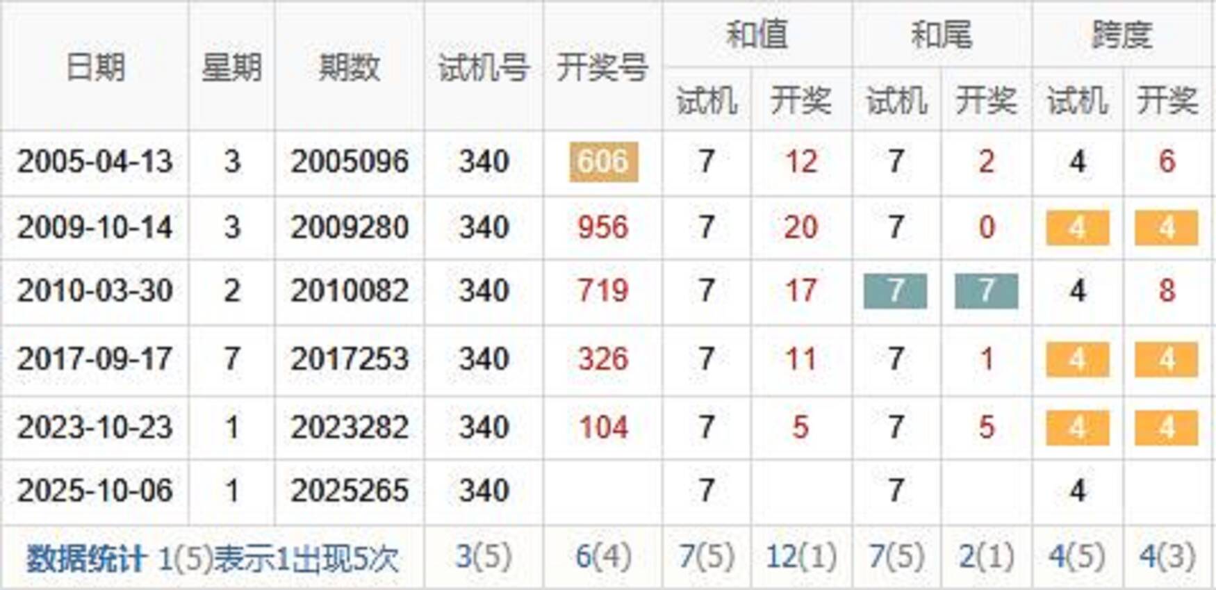 历史出现情况统计
