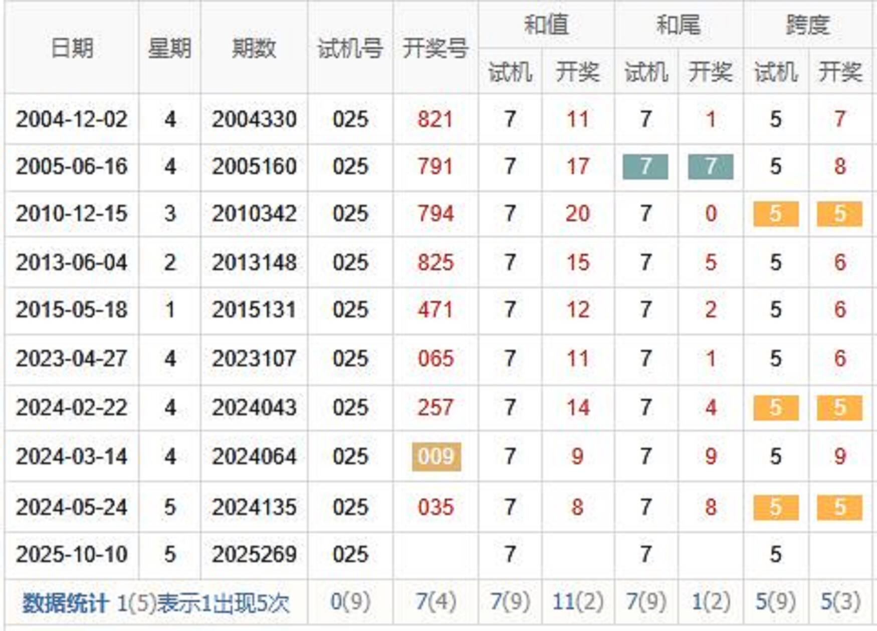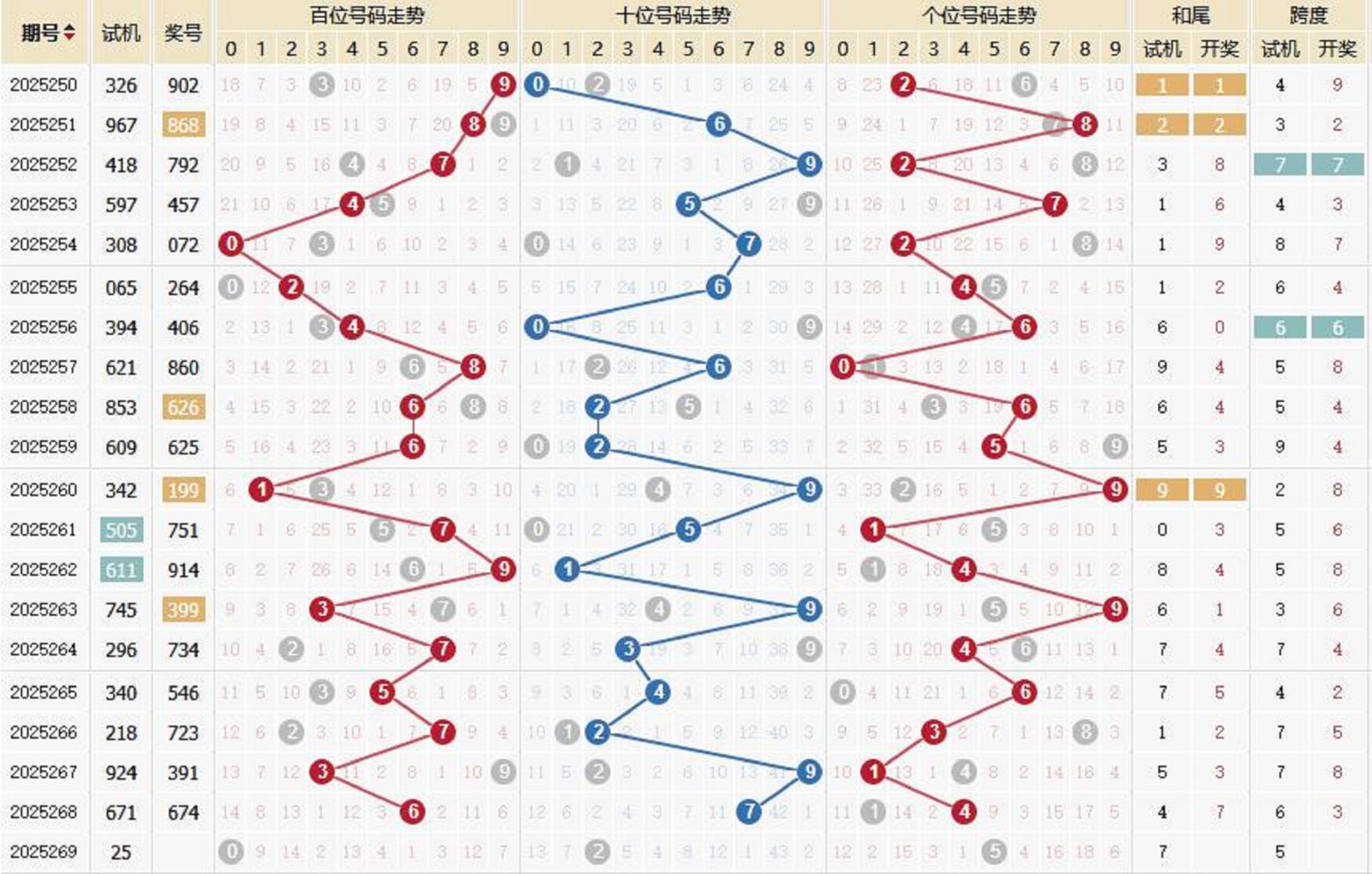 期数 | 试机号 | 关注码 | 金码 | 对应码 | 开奖号 | 出号 |