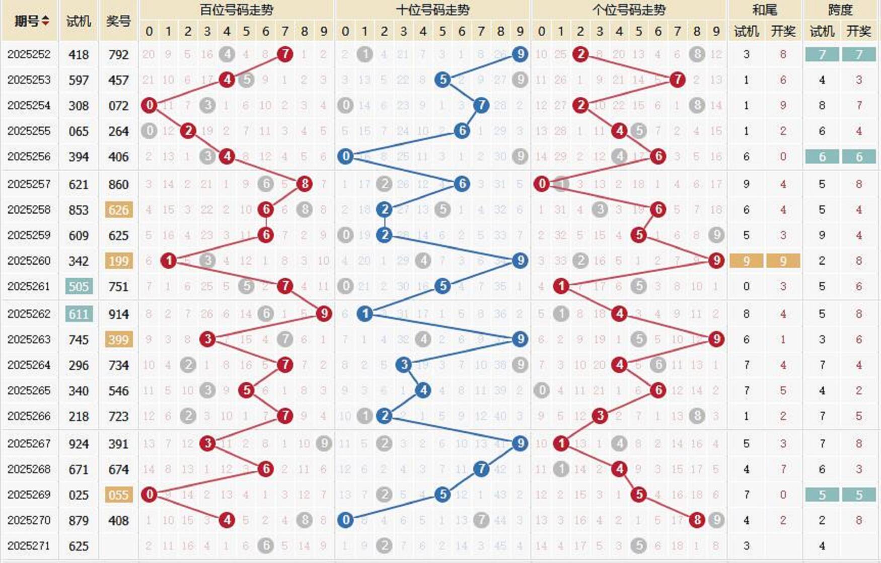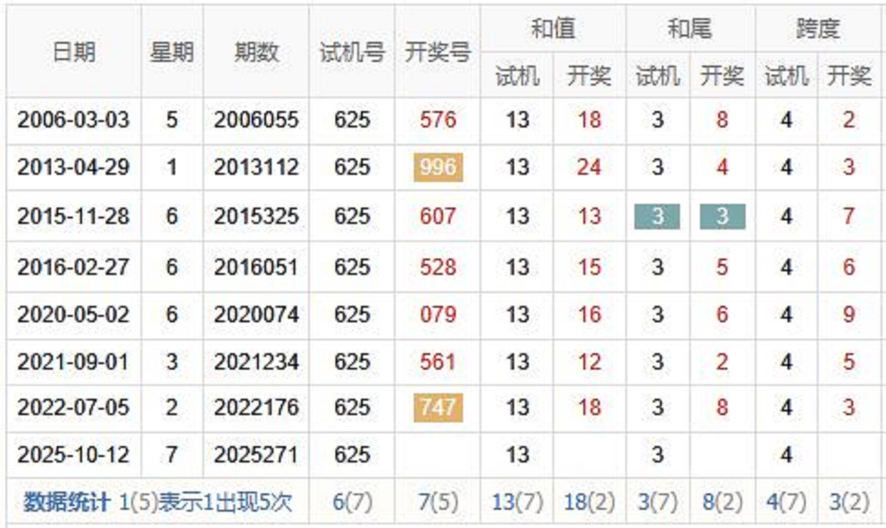 期数 | 试机号 | 关注码 | 金码 | 对应码 | 开奖号 | 出号 |