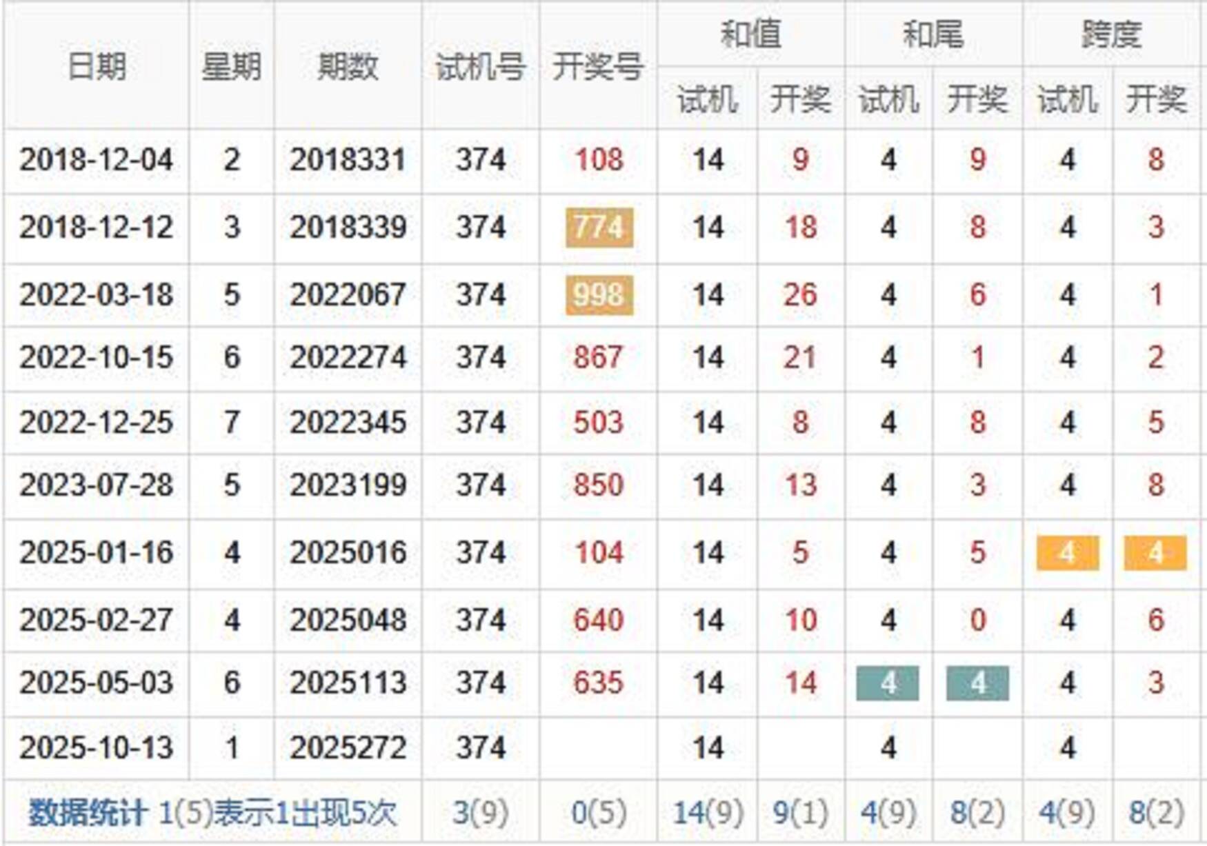 试机号走势图