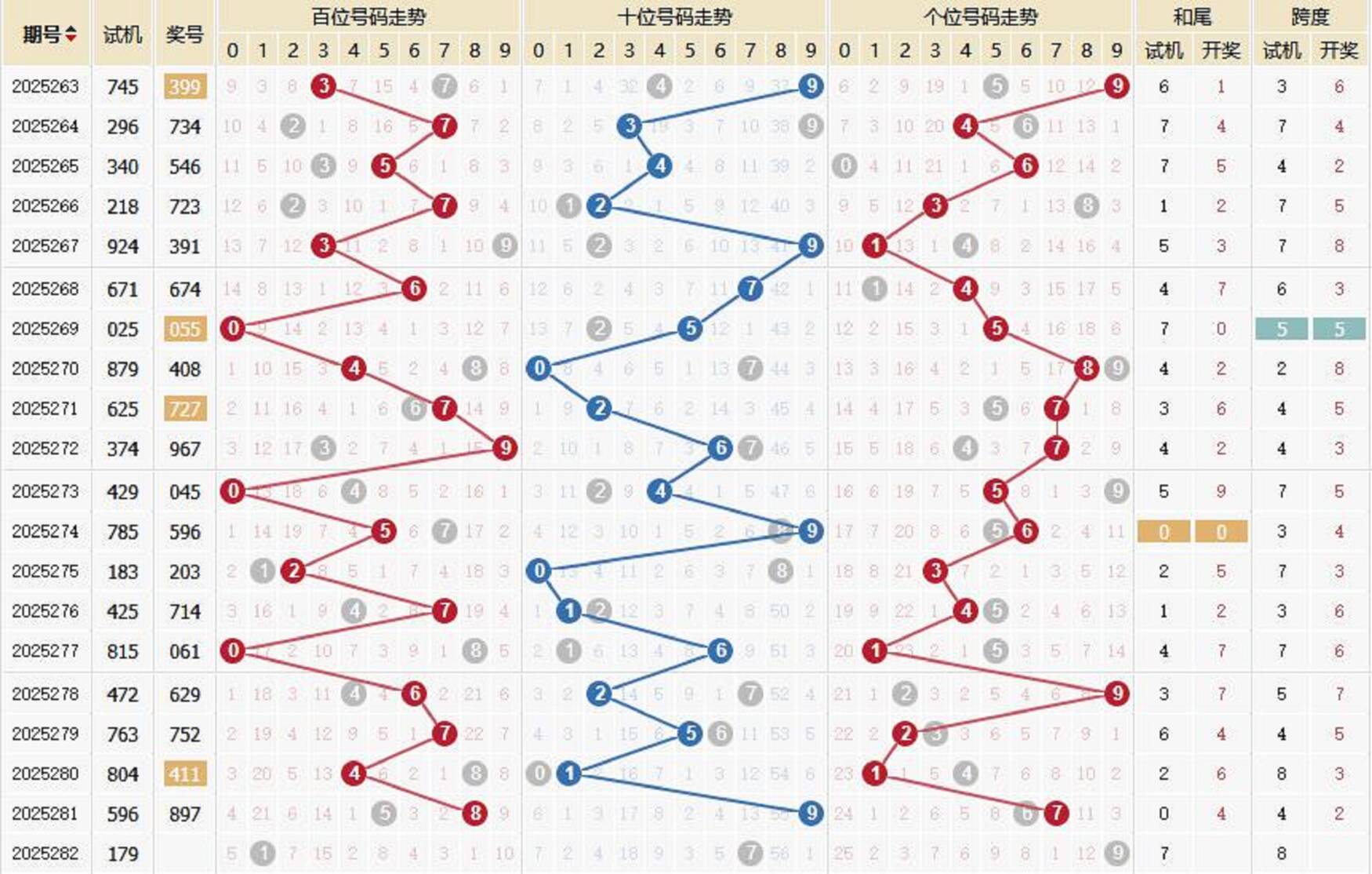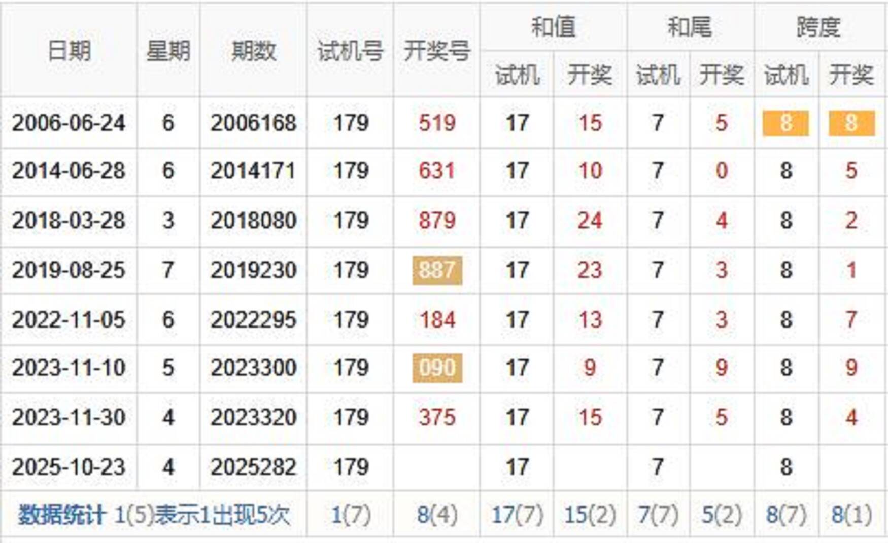 期数 | 试机号 | 关注码 | 金码 | 对应码 | 开奖号 | 出号 |