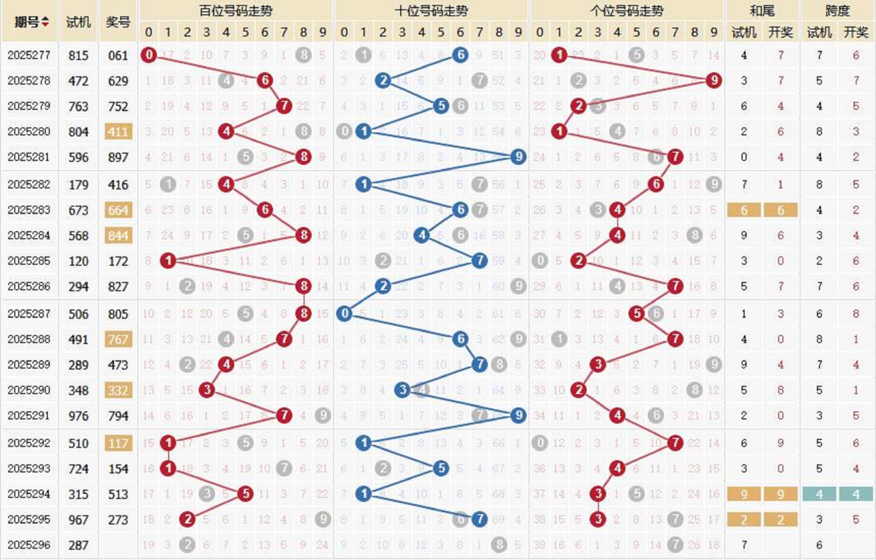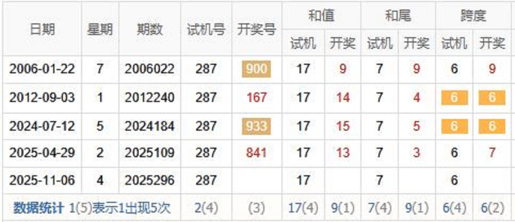 期数 | 试机号 | 关注码 | 金码 | 对应码 | 开奖号 | 出号 |