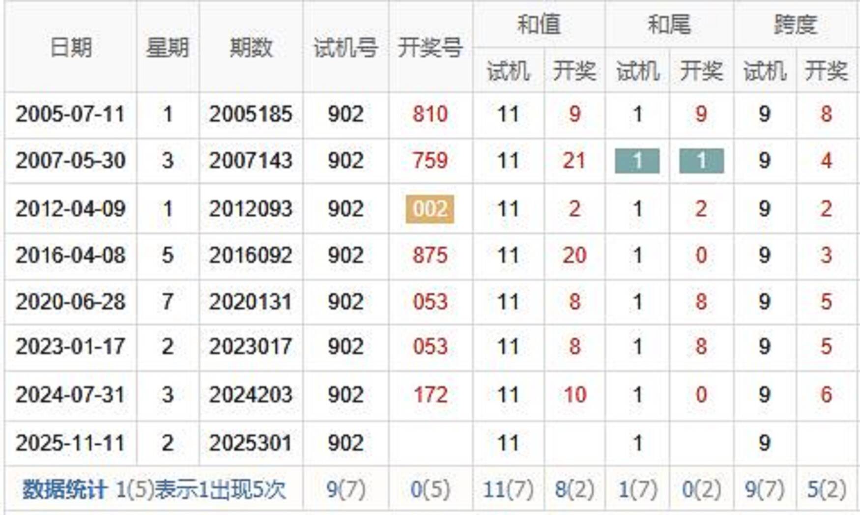 历史出现情况统计