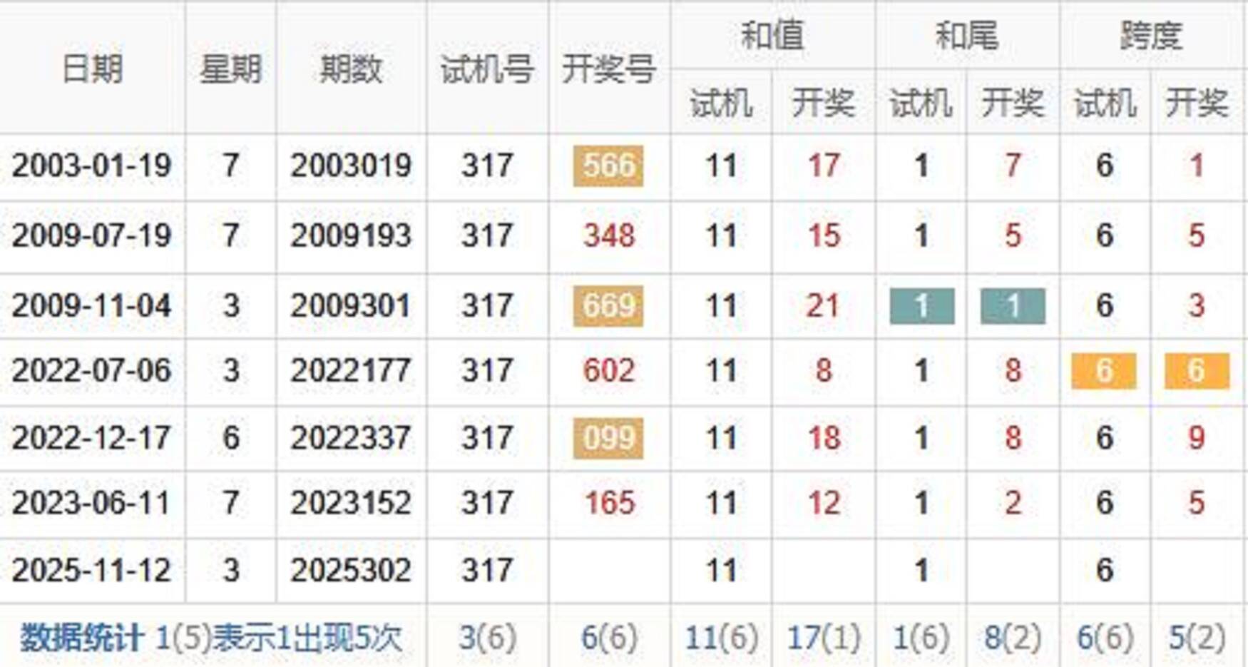 期数 | 试机号 | 关注码 | 金码 | 对应码 | 开奖号 | 出号 |