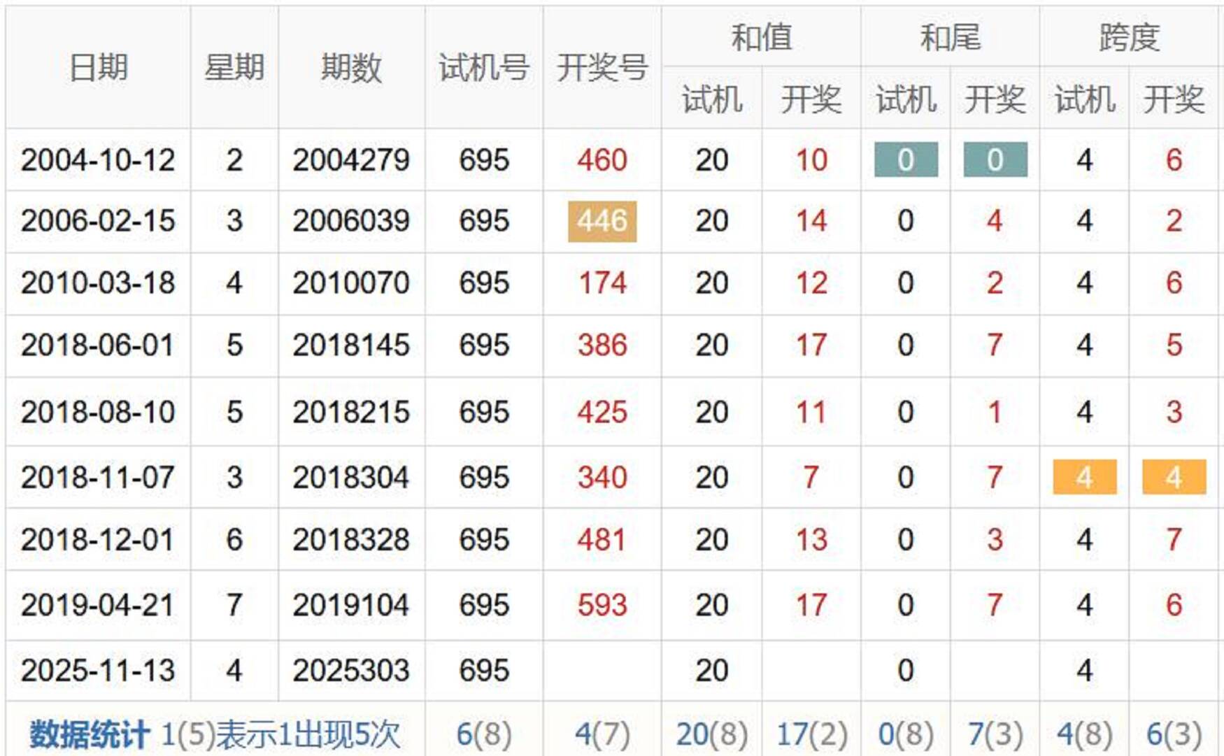 历史出现情况统计