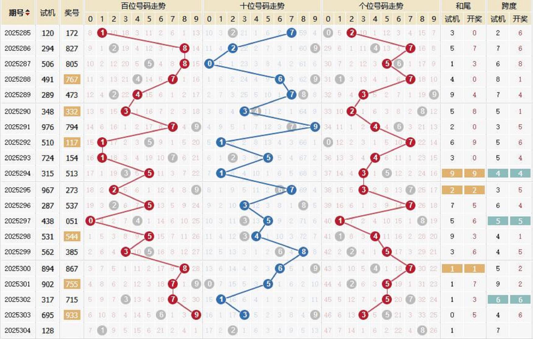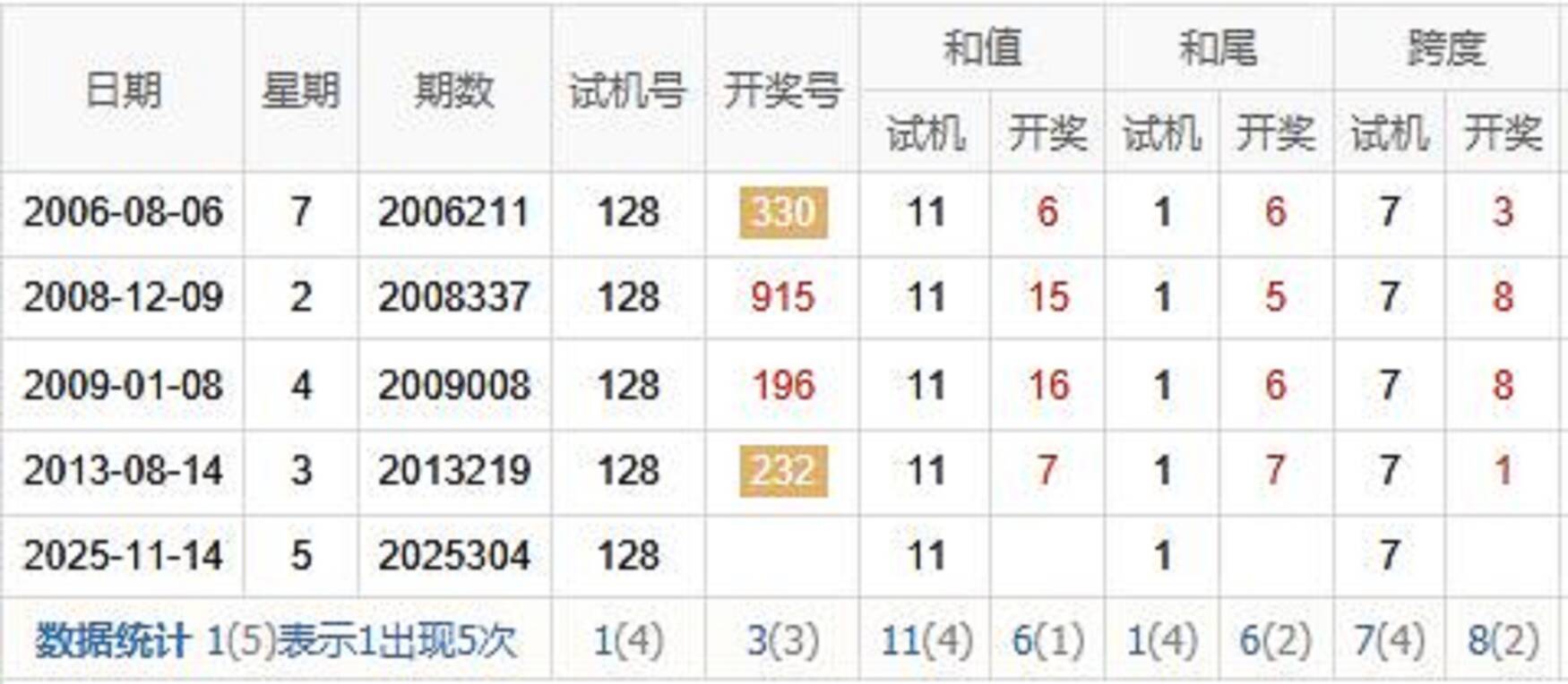 期数 | 试机号 | 关注码 | 金码 | 对应码 | 开奖号 | 出号 |