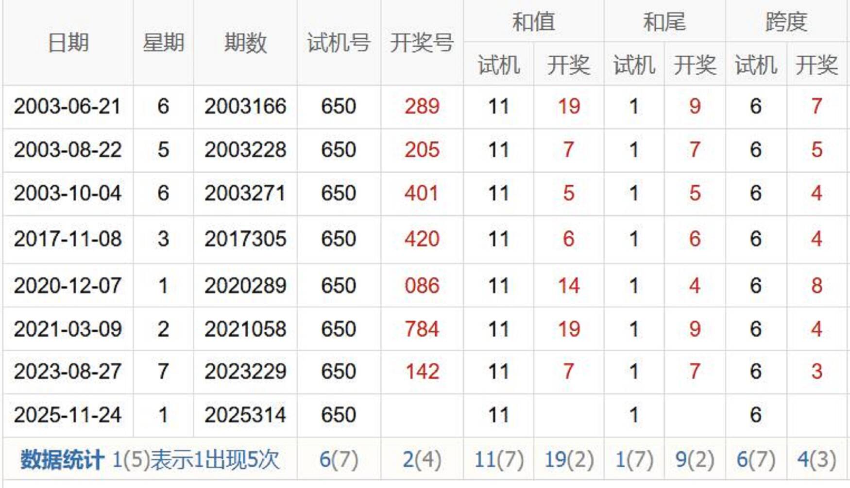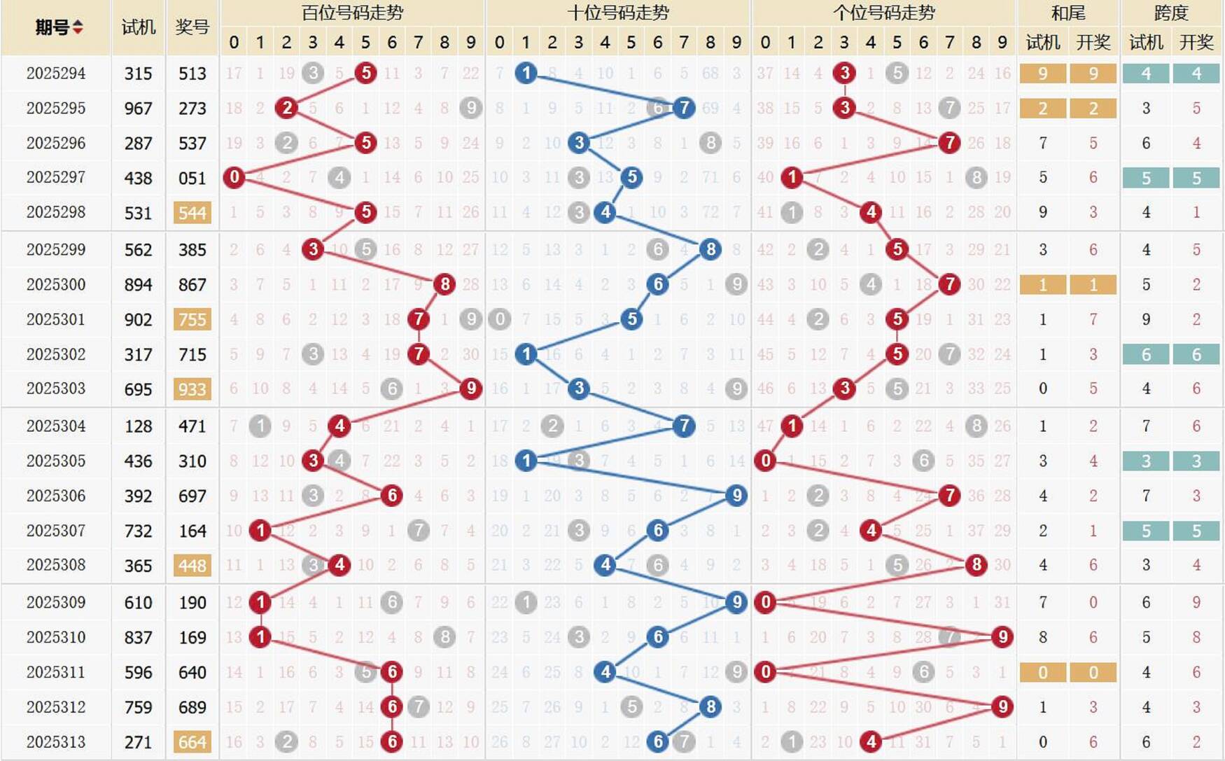 期数 | 试机号 | 关注码 | 金码 | 对应码 | 开奖号 | 出号 |