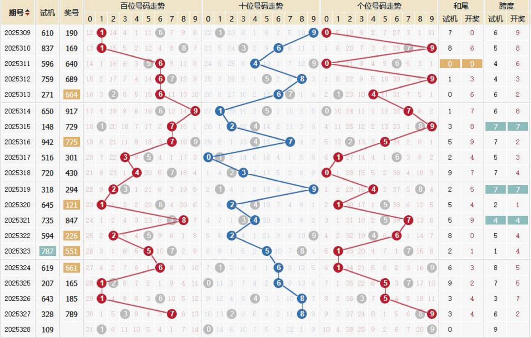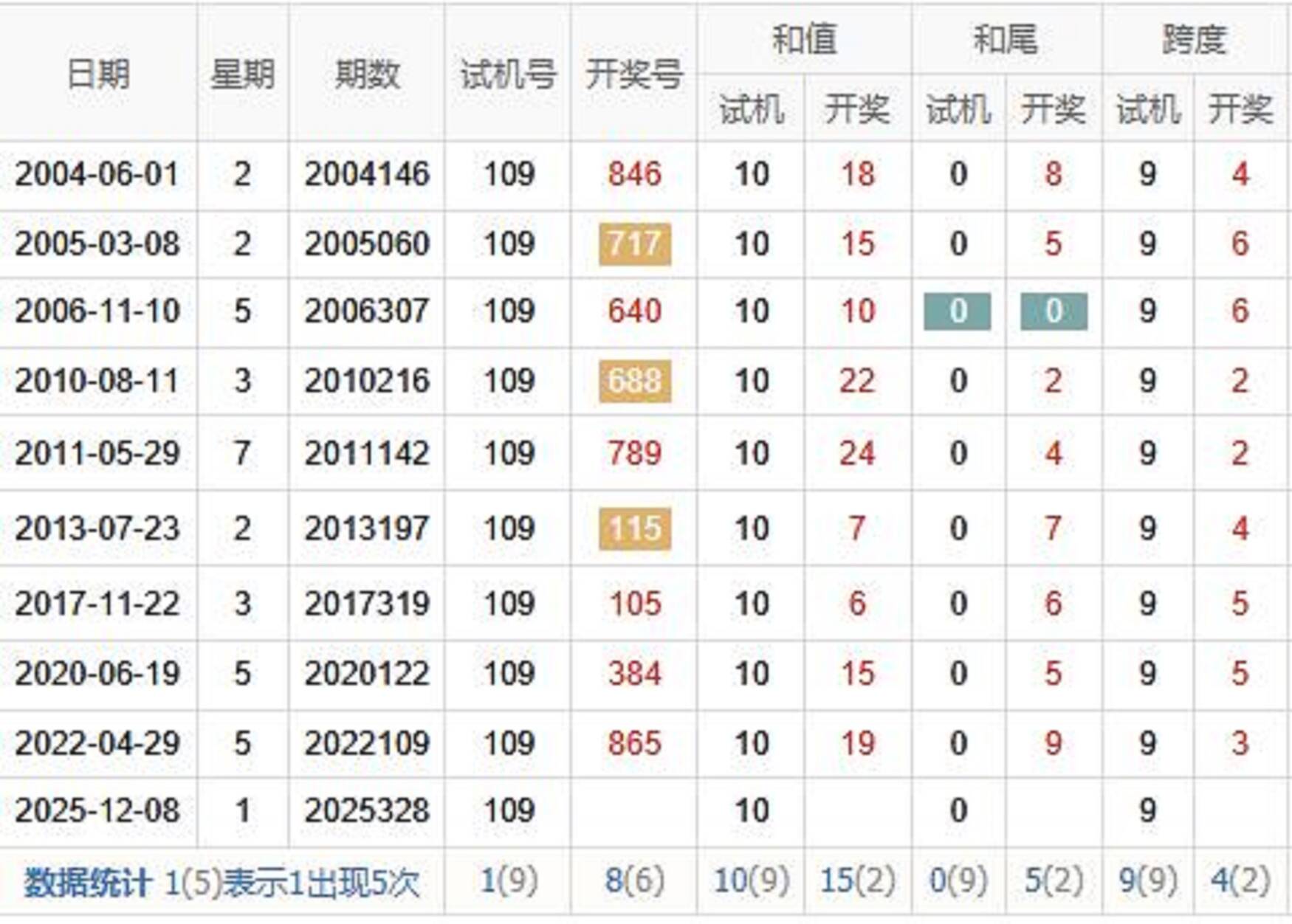 期数 | 试机号 | 关注码 | 金码 | 对应码 | 开奖号 | 出号 |