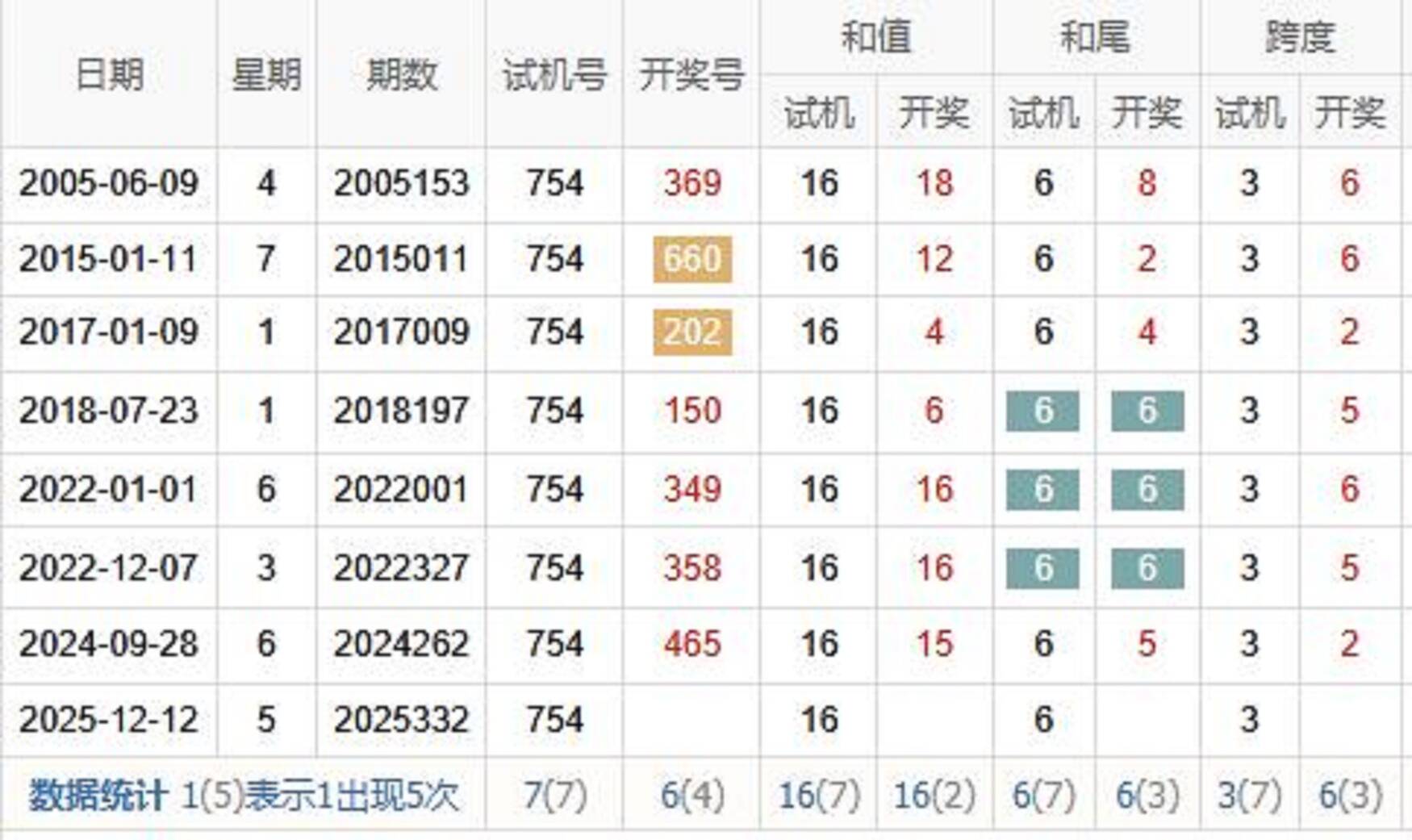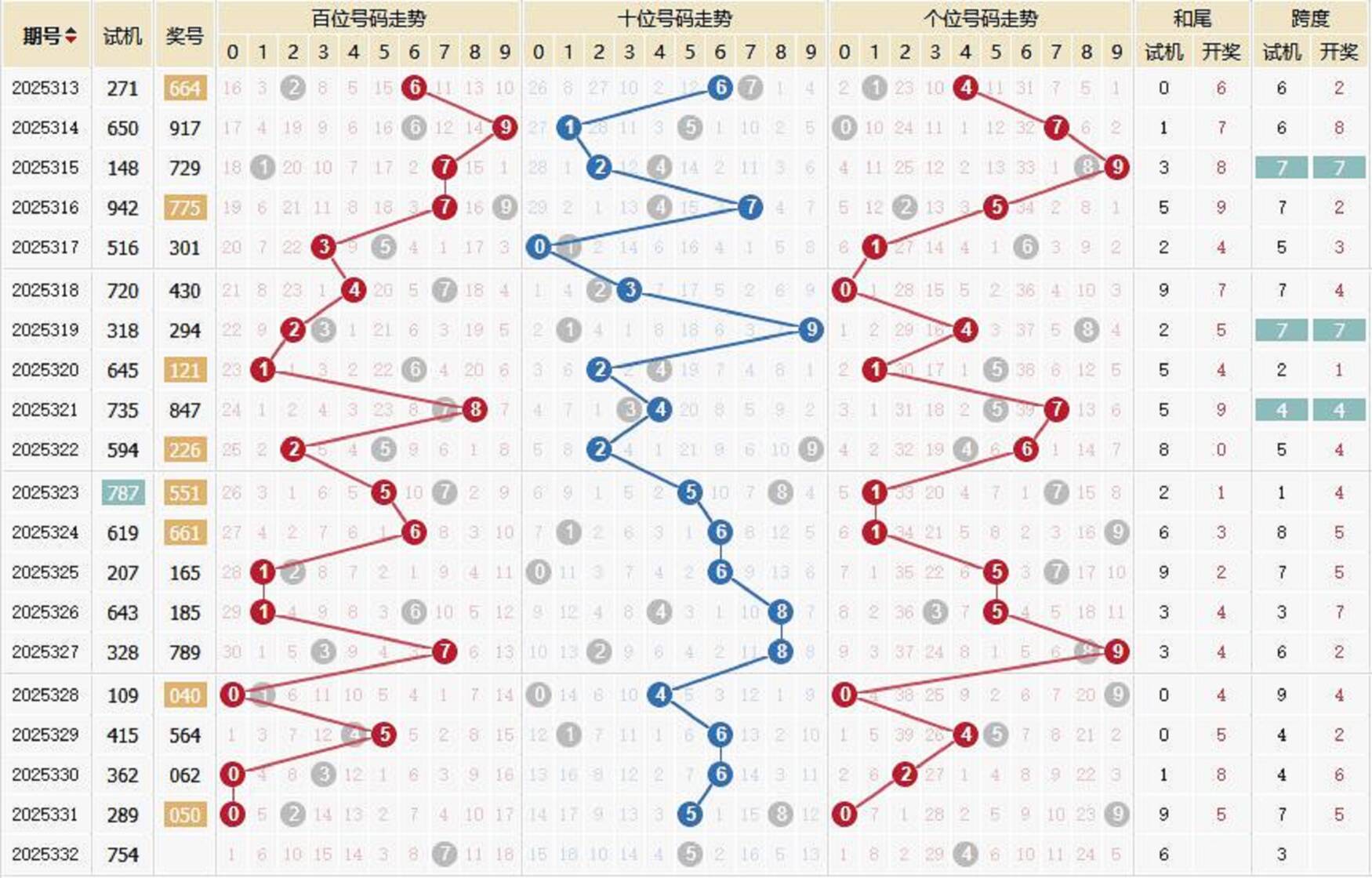 期数 | 试机号 | 关注码 | 金码 | 对应码 | 开奖号 | 出号 |