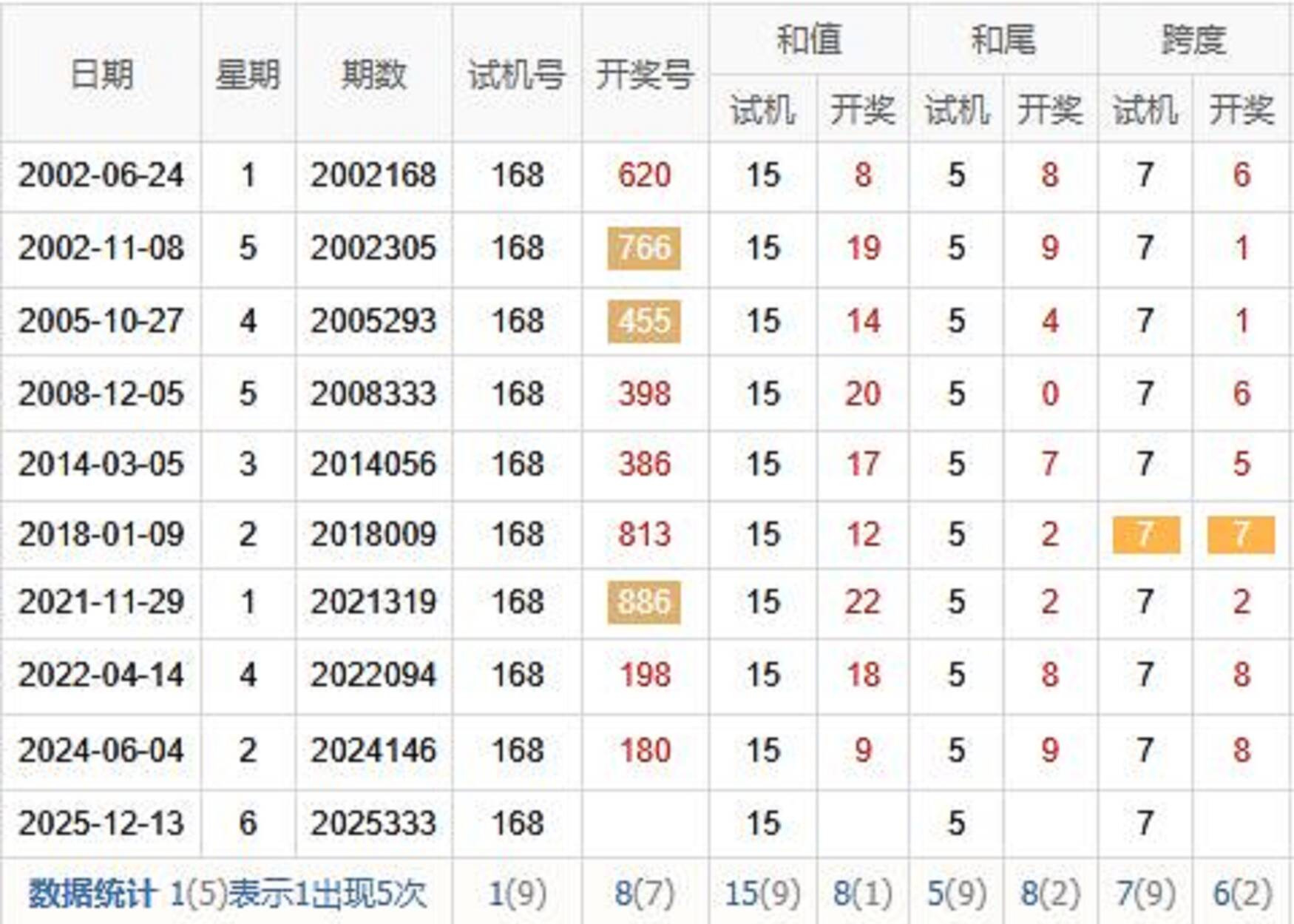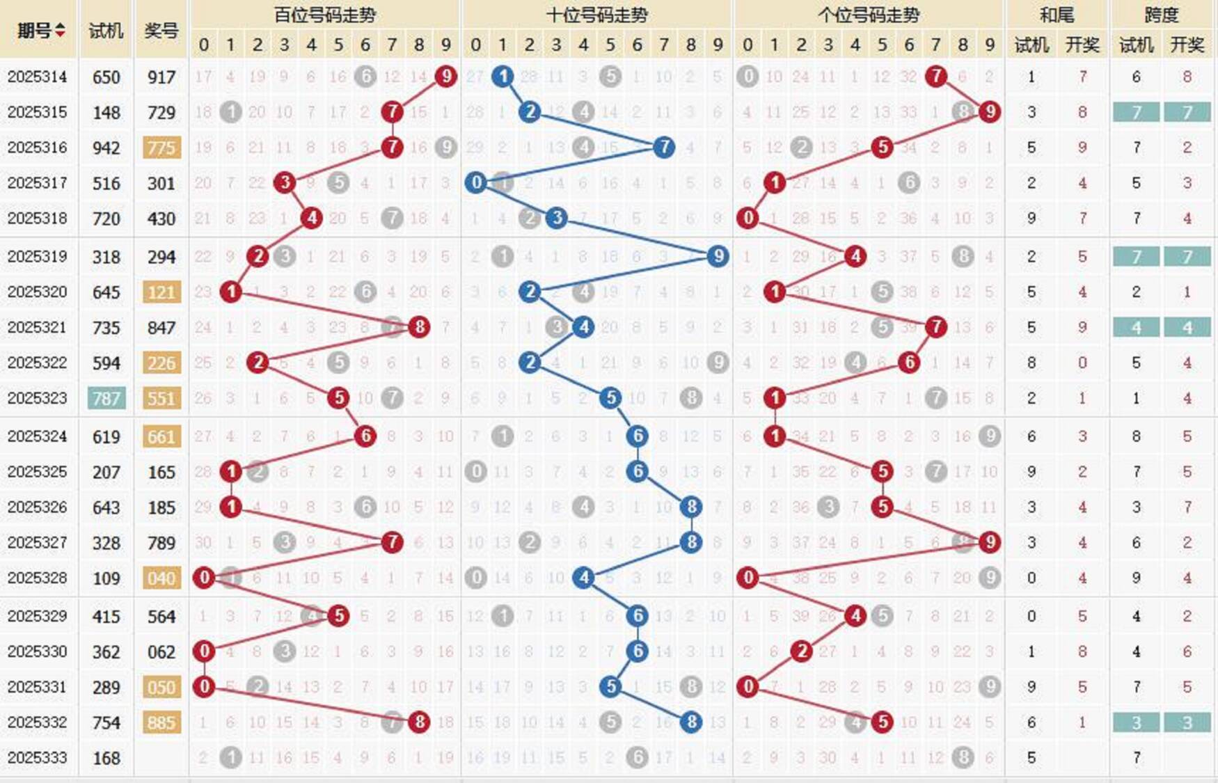期数 | 试机号 | 关注码 | 金码 | 对应码 | 开奖号 | 出号 |