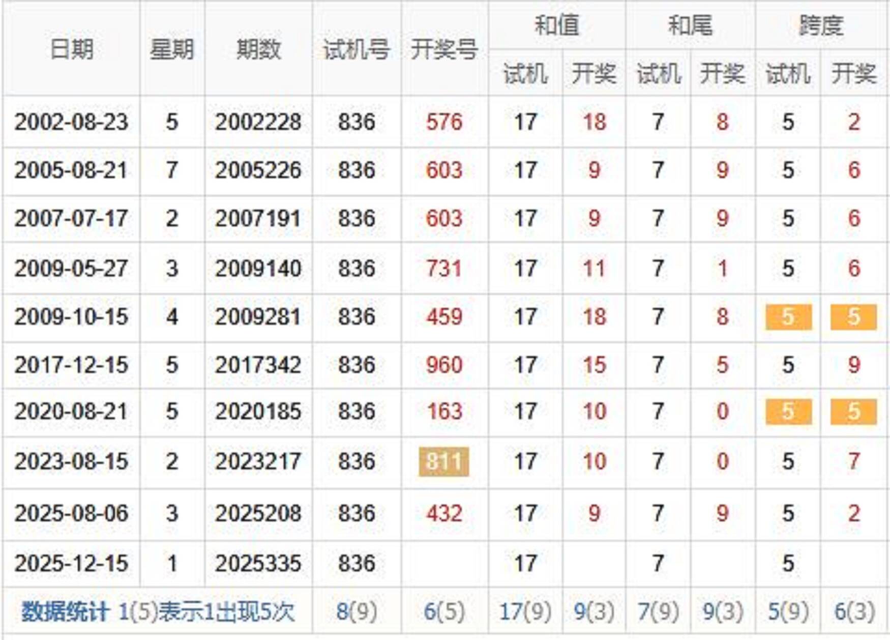 历史出现情况统计
